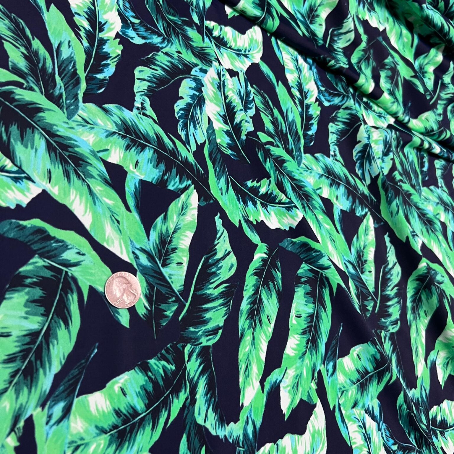 WhatsApp Image 2022-05-13 at 4.26.35 PM (1) Published May 16, 2022 at 1600 × 1600 in Leaves Green Black background Print Nylon Lycra Spandex Fabric 4 Way Strech by Yard for swimwear dancewear dress gymwear (242-5) Next →