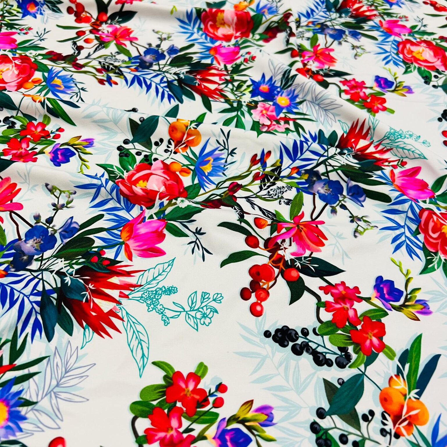 WhatsApp Image 2022-06-15 at 7.41.17 PM (2) Published June 16, 2022 at 1600 × 1600 in Birds of Paradise Flowers with Palms PriSmall Colorful Flowers Print Nylon Lycra Spandex Fabric 4 Way Strech by Yard for swimwear dancewear dress gymwear (157-8) ← Previous Next →