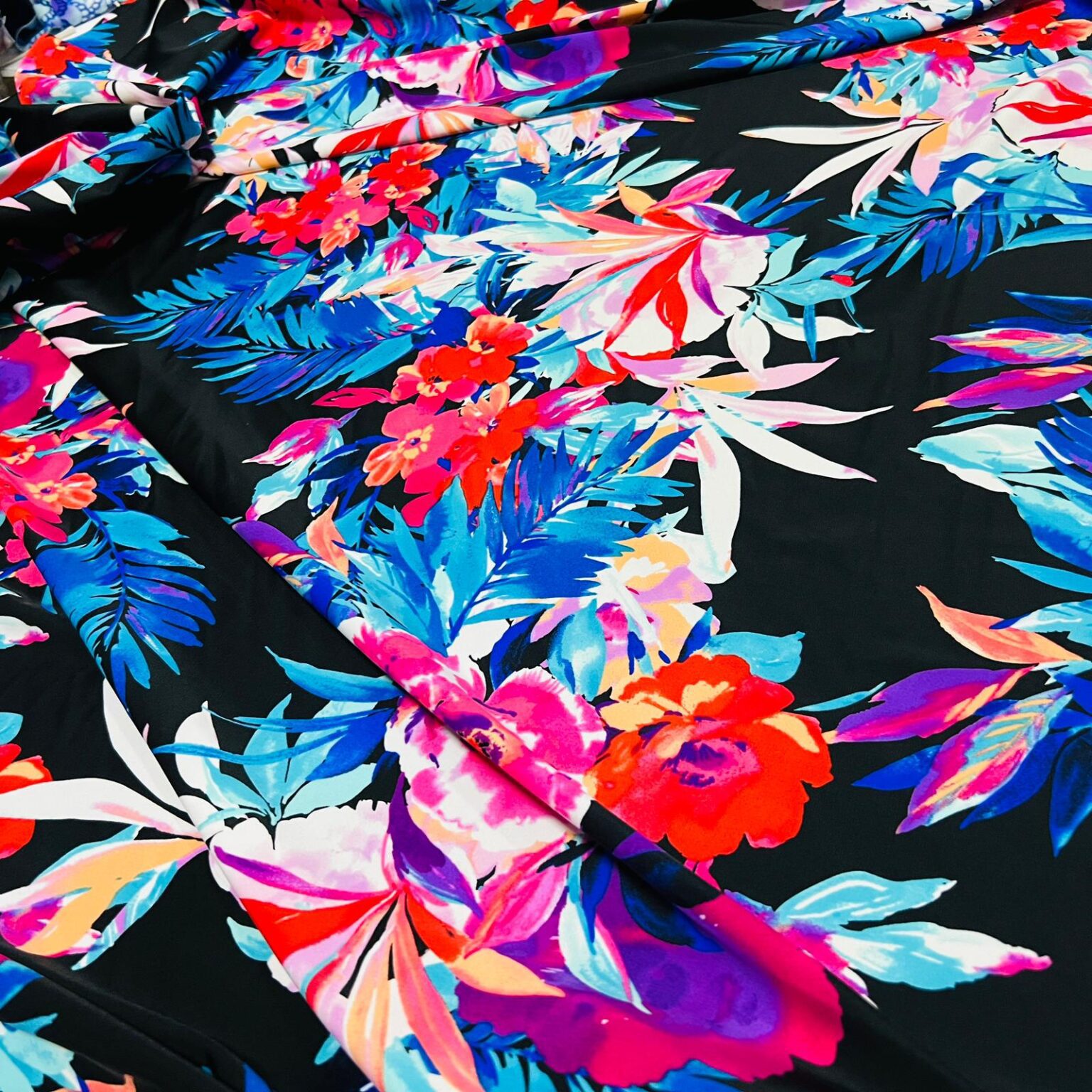 WhatsApp Image 2022-07-14 at 4.57.54 PM Published July 15, 2022 at 1600 × 1600 in Floral Print Black background Nylon Lycra Spandex Fabric 4 Way Strech by Yard for swimwear dancewear dress gymwear (157-7) Next →
