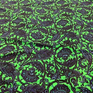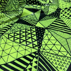 Neon Green Geometric Print Nylon Lycra Spandex Fabric 4 Way Stretch By Yard for Swimwear