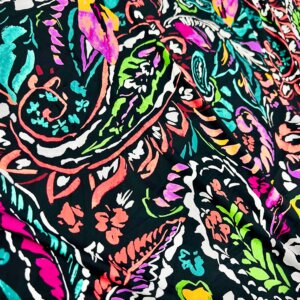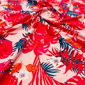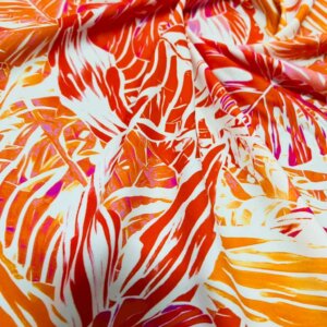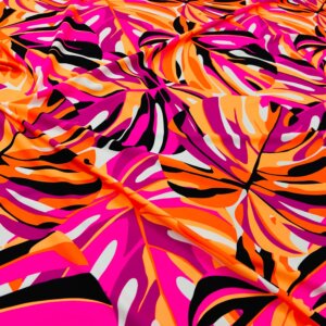Multicolor Neon Palm Leaves Print Nylon Lycra Spandex Fabric 4 Way Stretch By Yard (205-12)(40)
