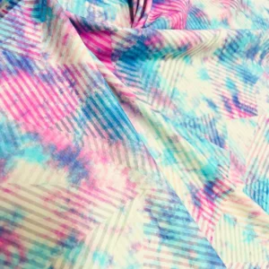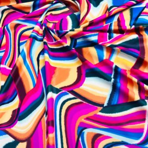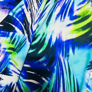 Lycras fabrics with abstract prints of different colors, these prints do not have a specific shape but they look beautiful in garments such as swimsuits and leggings. Its specific composition is 80% Nylon and 20% Spandex, they are high quality fabrics and thick, all our fabrics are imported from France and the United States.