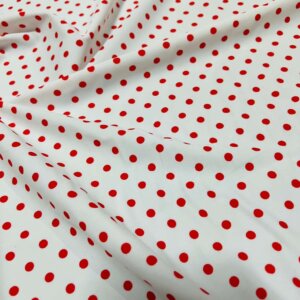 White Polka Dots Red background Print Nylon Spandex Fabric 4 Way Stretch By Yard
