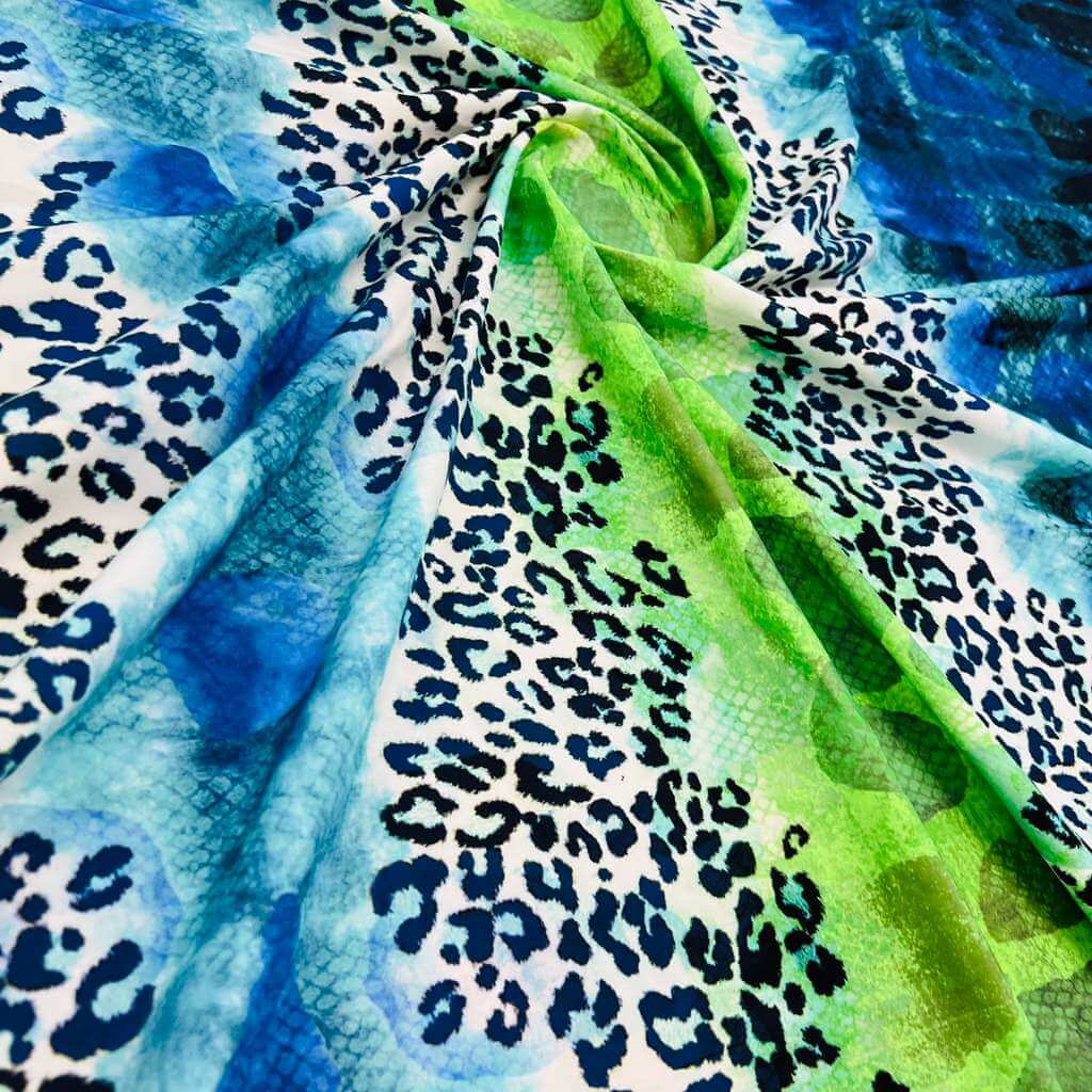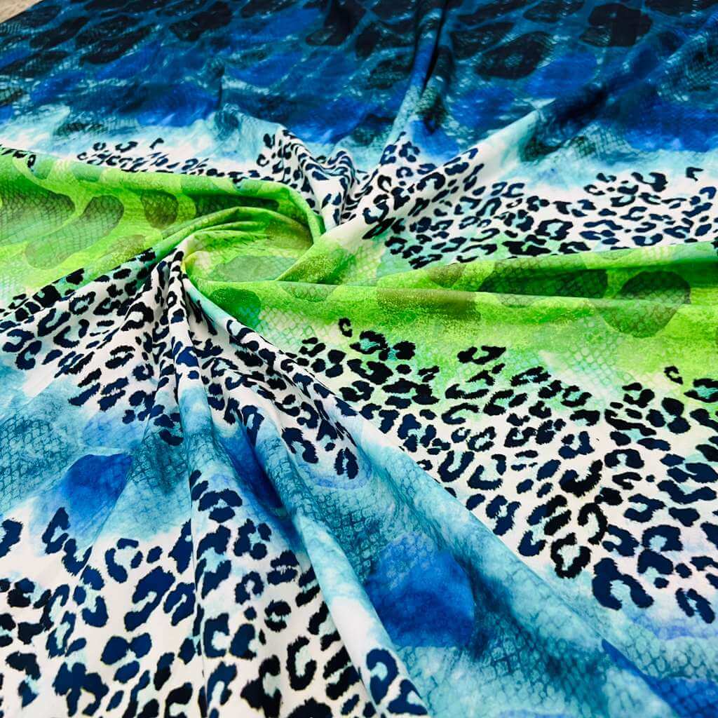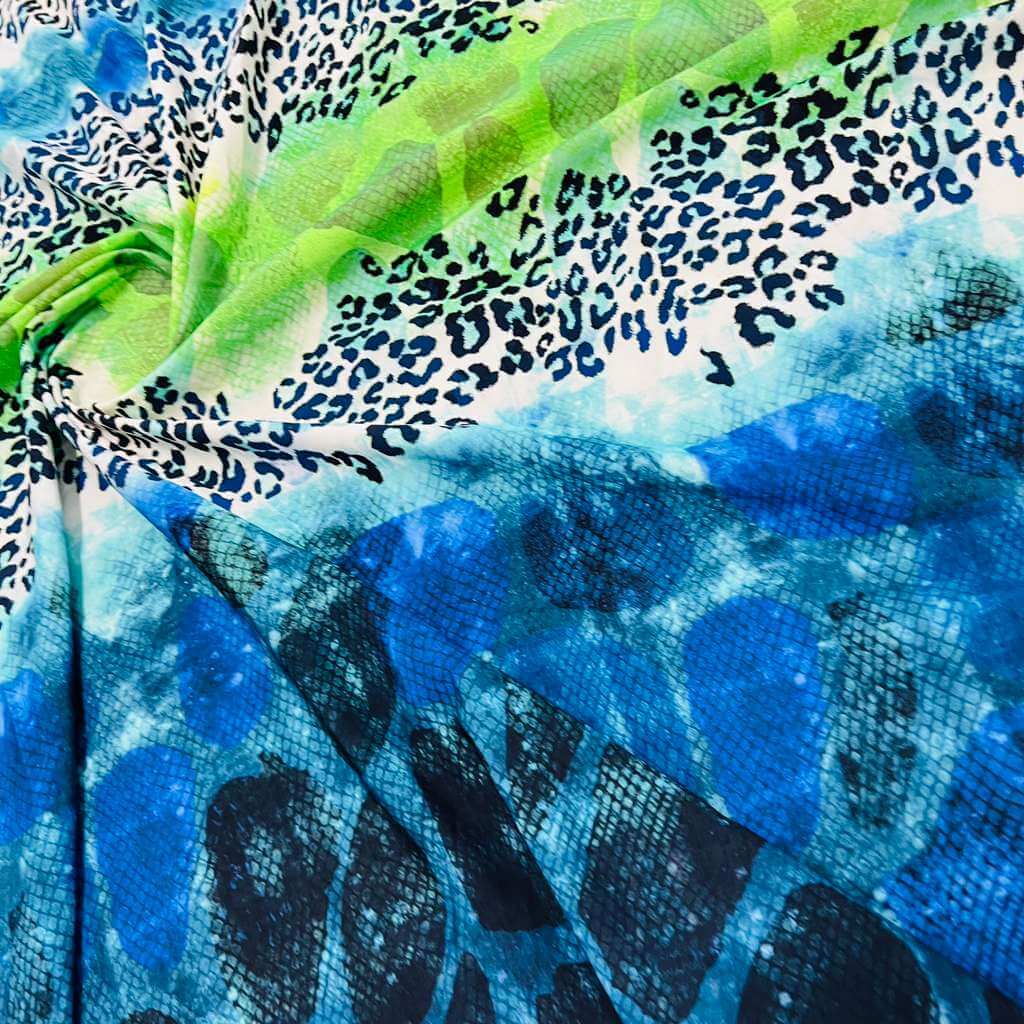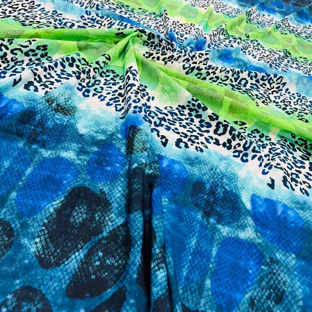 Abstract Animal print Blue and Green Nylon Spandex Fabric 4 Way Stretch By Yard for swimwear dancewear gymwear sportwear (159-4)(24)