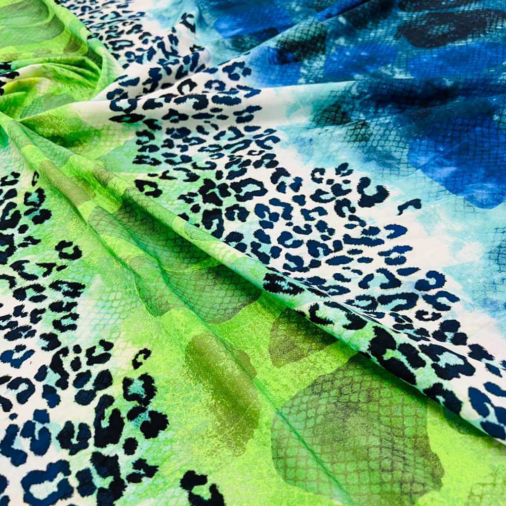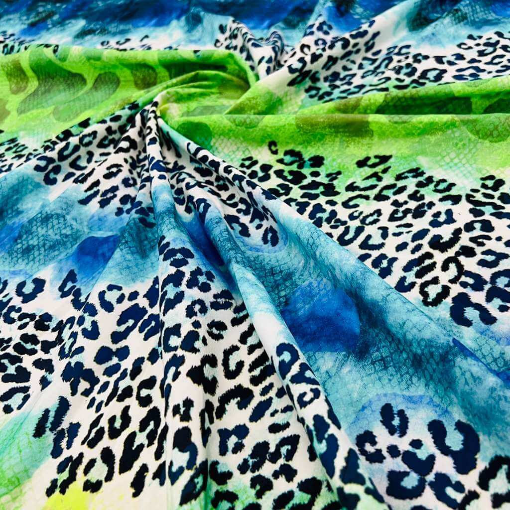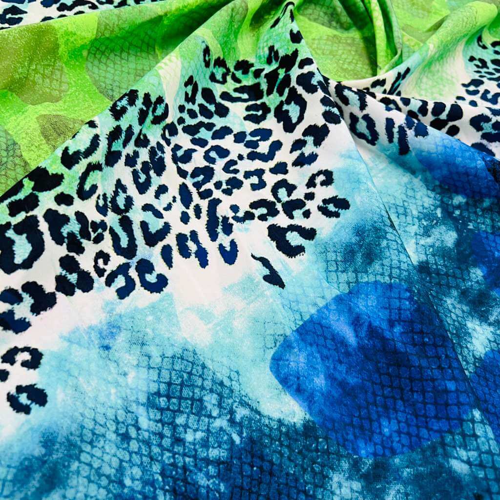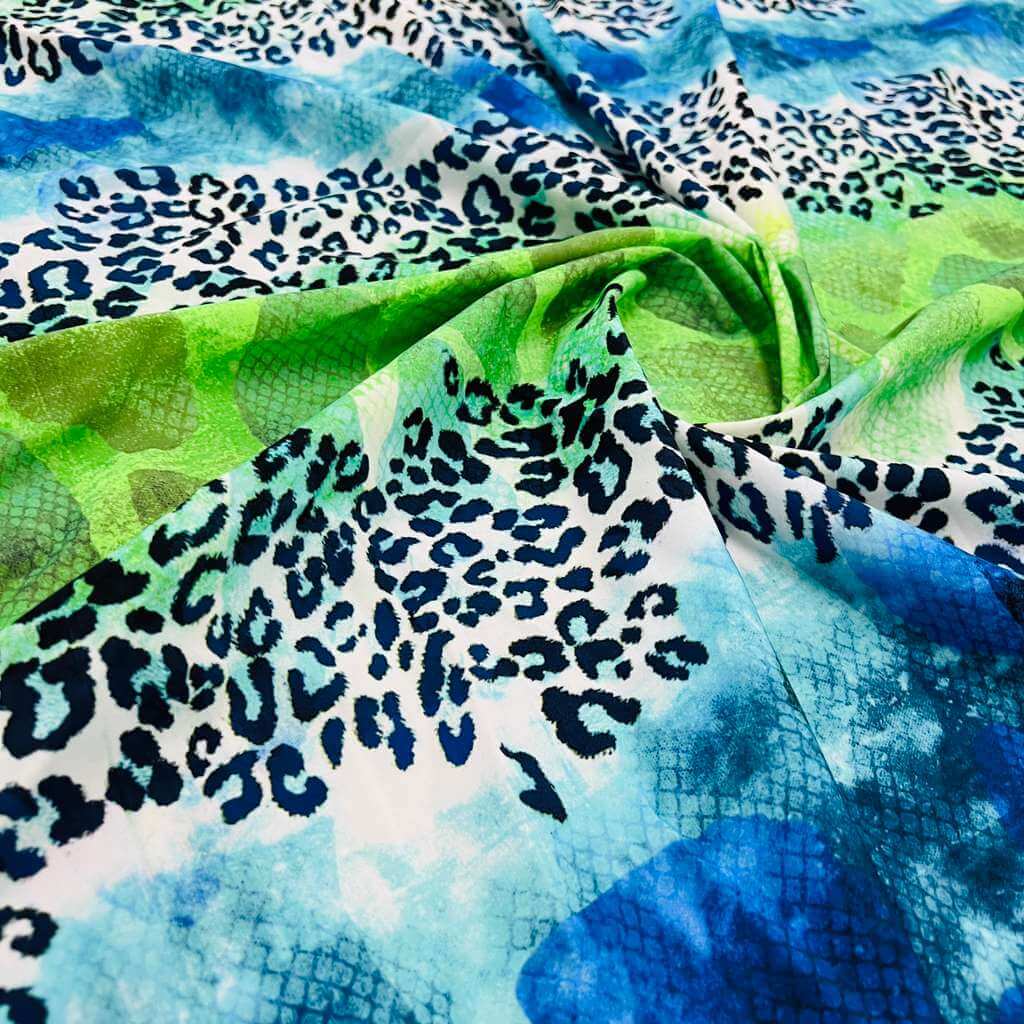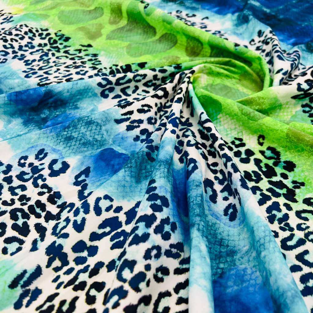 Abstract Animal print Blue and Green Nylon Spandex Fabric 4 Way Stretch By Yard for swimwear dancewear gymwear sportwear (159-4)(24)