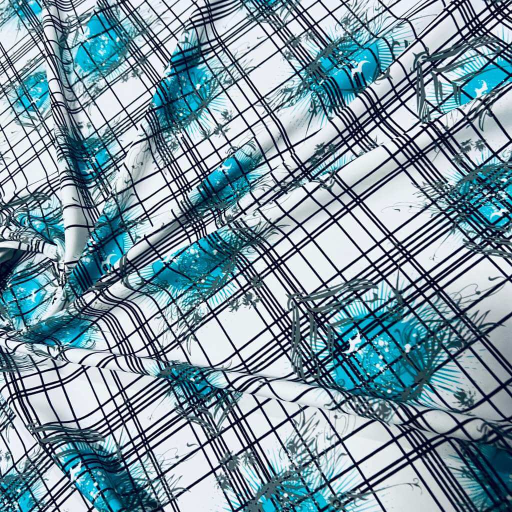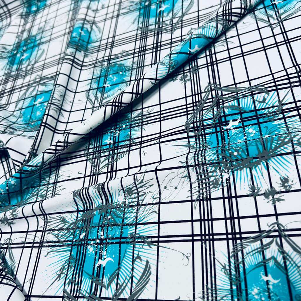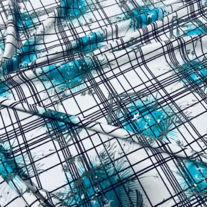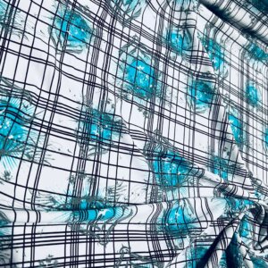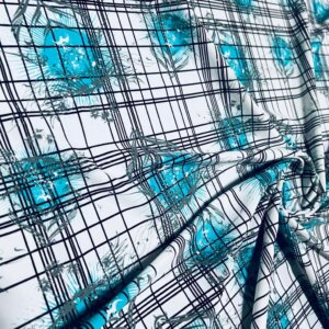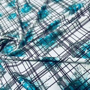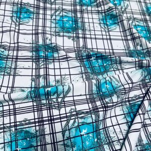 You are viewing Abstract Art lines print Nylon Spandex Fabric 4 Way Stretch By Yard for swimwear dancewear gymwear sportwear. Extremely beautiful print weight 200 to 220 GSM 80% Nylon 20% Spandex.