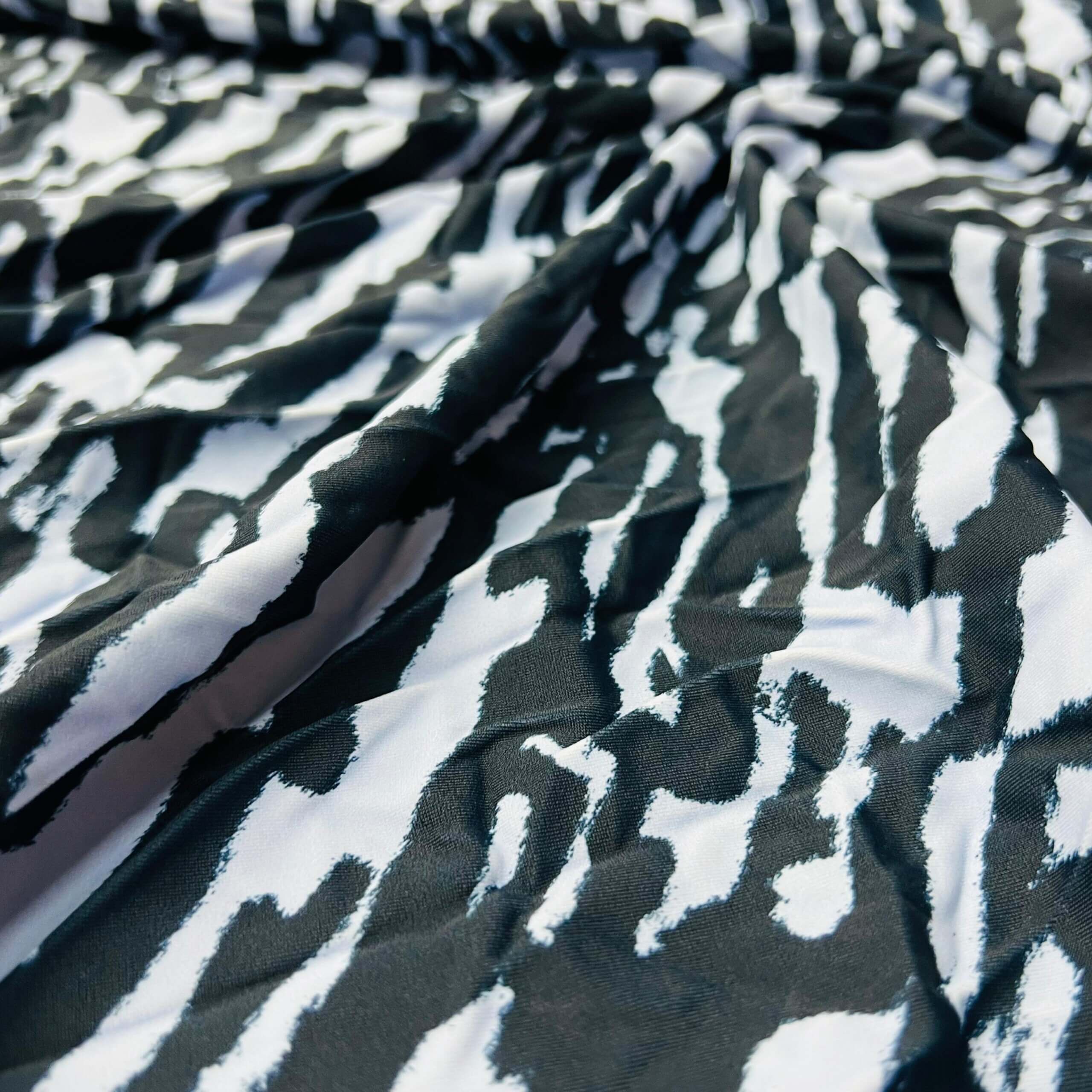 Abstract Black and White Camouflage Print Nylon Spandex Fabric 4 Way Stretch for swimwear dancewear gymwear sportwear dress skirt (158-1)