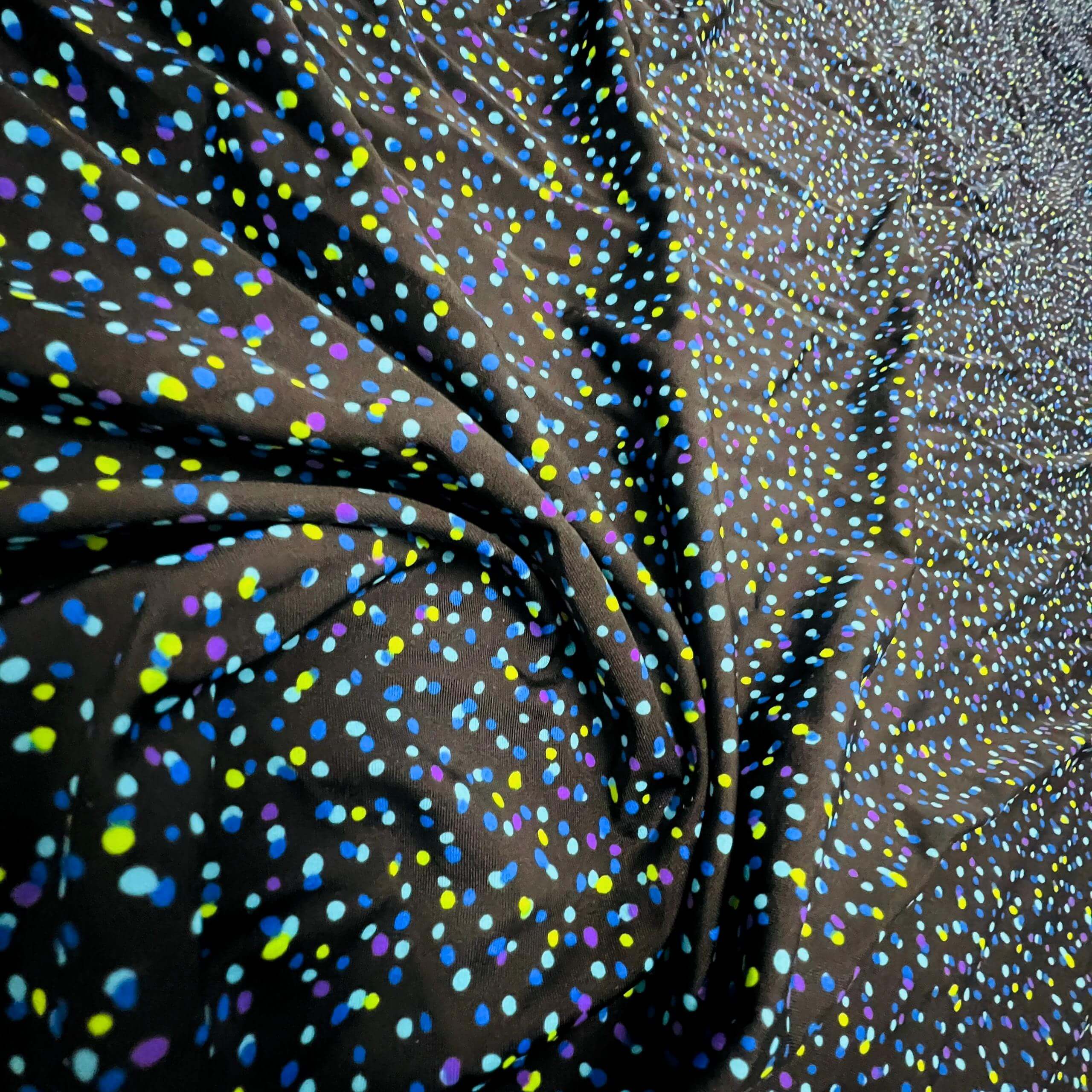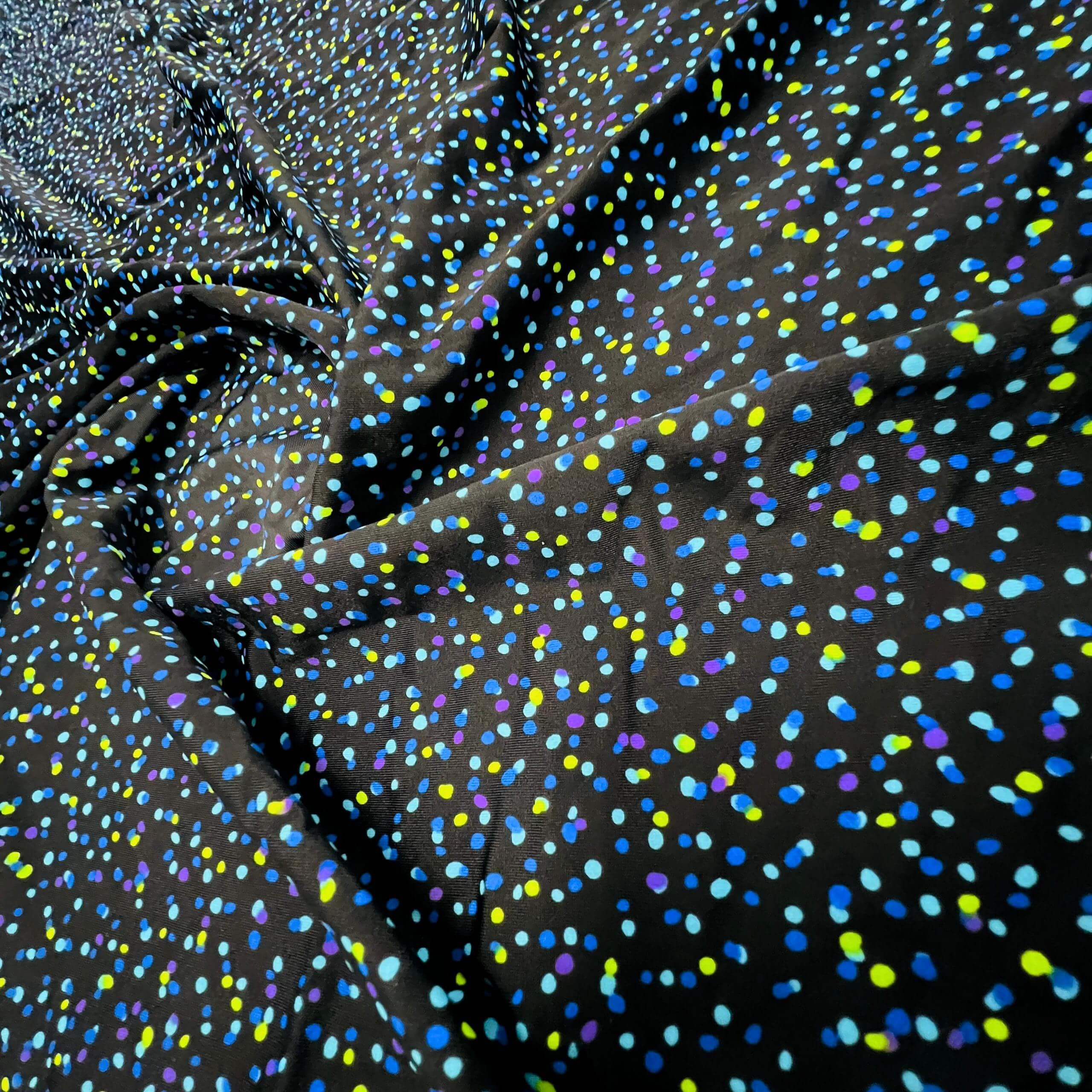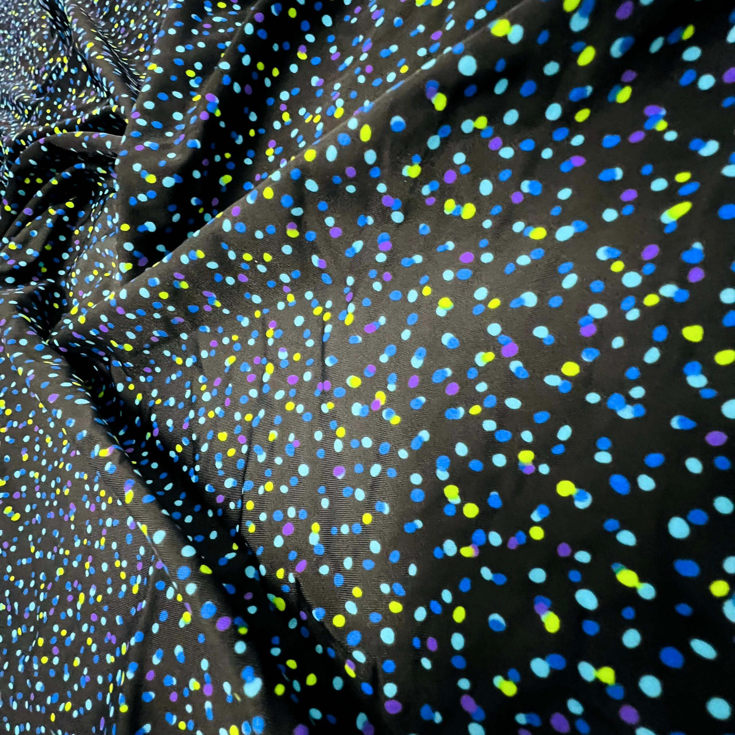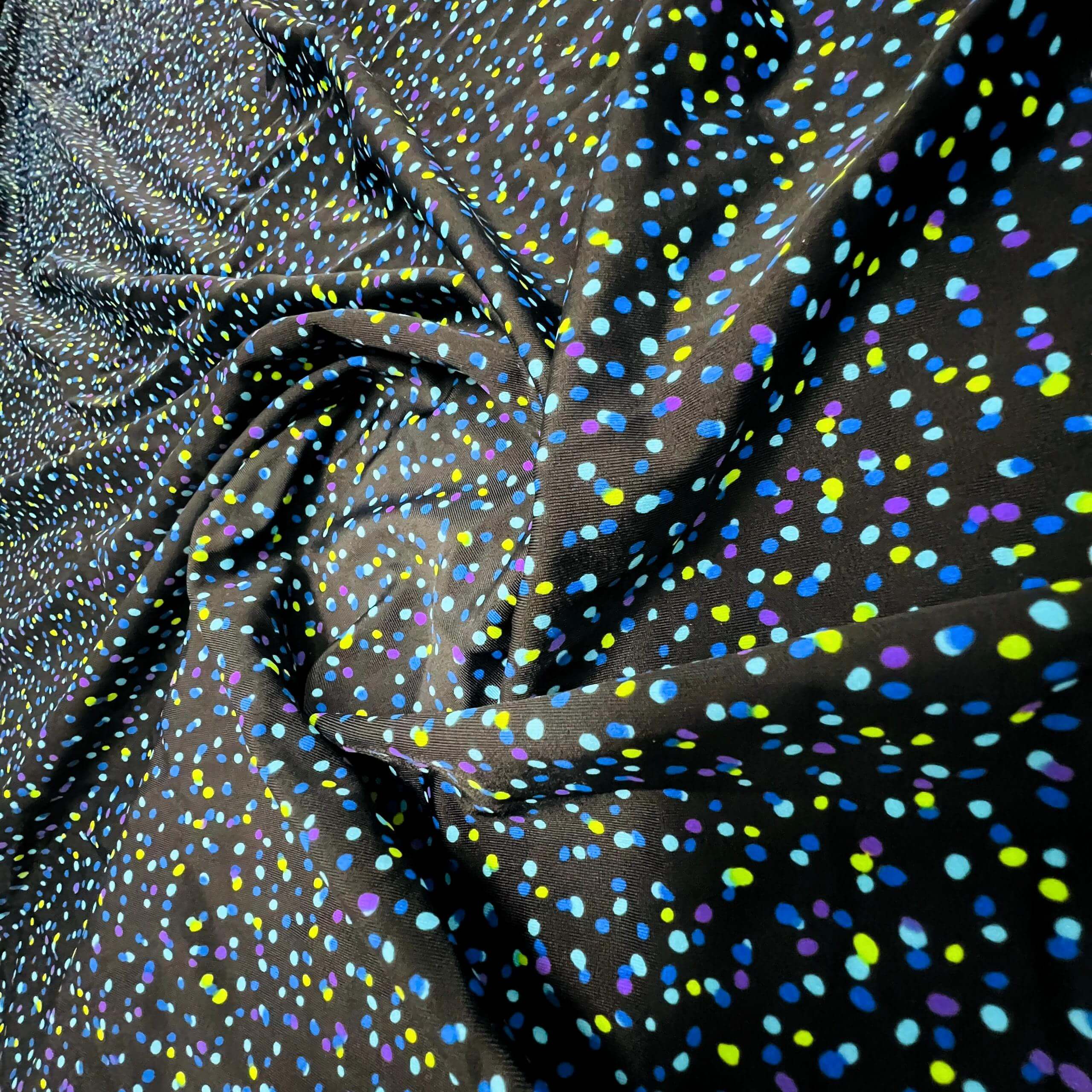 Abstract Black with Green and Neon Blue Dots Print Nylon Lycra Spandex Fabric 4 Way Stretch By Yard for swimwear dancewear gymwear sportwear dress (239-7)