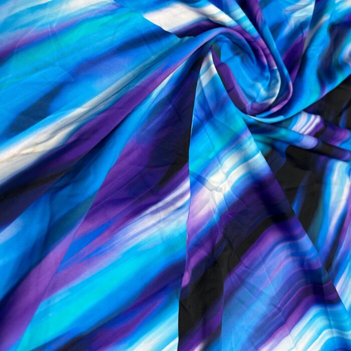 Abstract Blue and Purple Print Nylon Lycra Spandex Fabric 4 Way Stretch By Yard for swimwear dancewear gymwear sportwear dress (243-8)