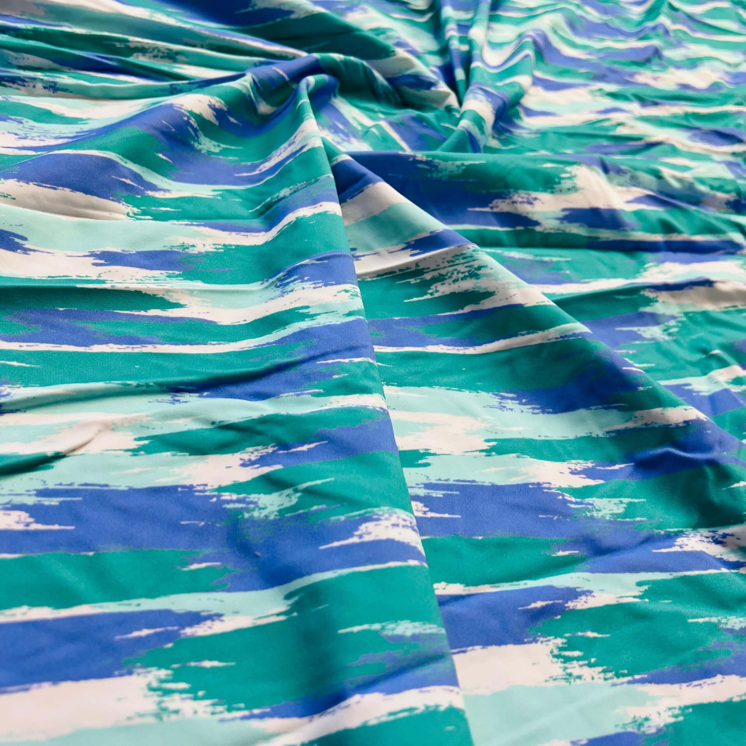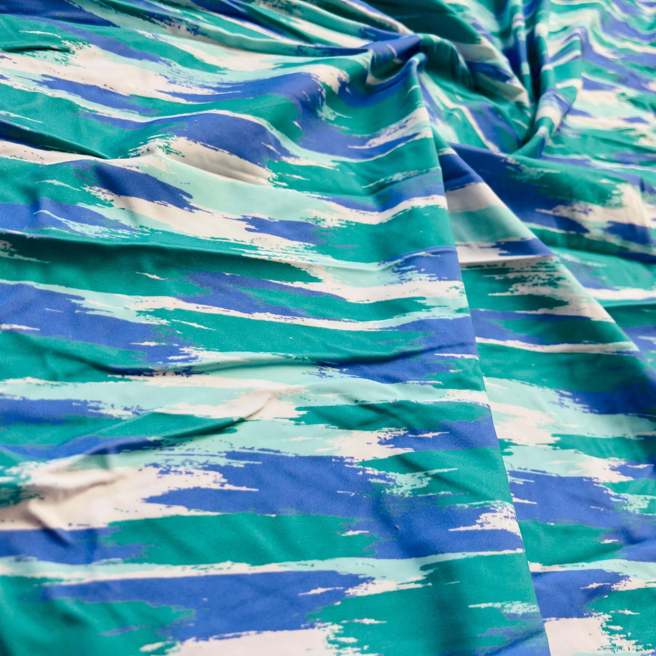 Abstract Blue and White Print Nylon Lycra Spandex Fabric 4 Way Stretch By Yard for swimwear dancewear gymwear sportwear dress skirt (239-11)