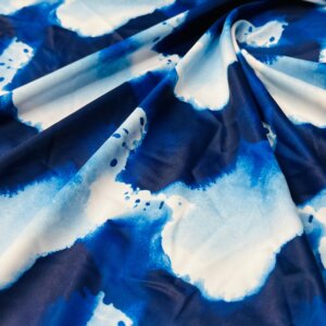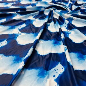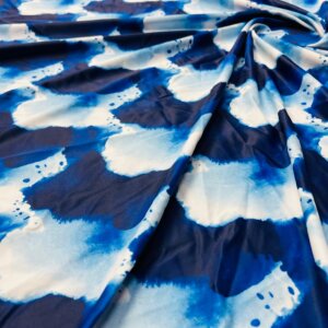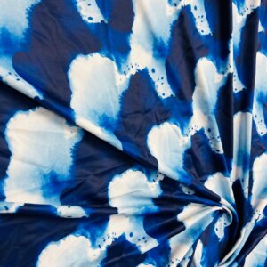 Abstract Blue and White Print Nylon Spandex Fabric 4 Way Stretch for swimwear dancewear gymwear sportwear dress skirt (204-6)
