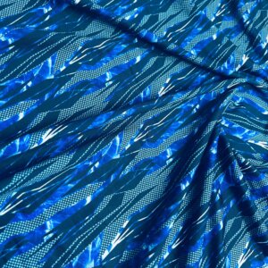Abstract Blue Print Nylon Lycra Spandex Fabric 4 Way Stretch By Yard for swimwear dancewear gymwear sportwear dress (204-7)