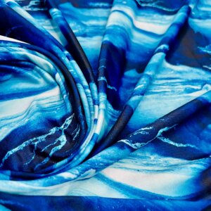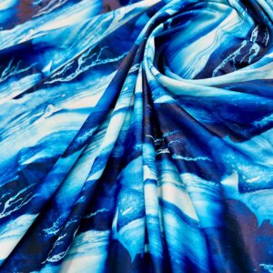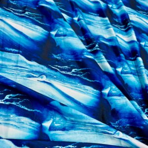 Abstract Blue Waves Print Nylon Lycra Spandex Fabric 4 Way Stretch By Yard for swimwear dancewear gymwear sportwear dress (242-8)
