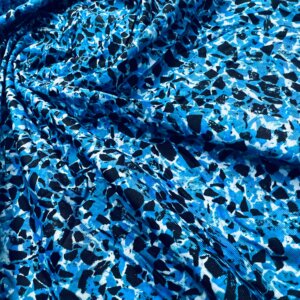 Abstract Blue with Black Print Nylon Spandex Fabric 4 Way Stretch for swimwear dancewear gymwear sportwear dress skirt (203-4)