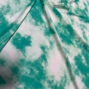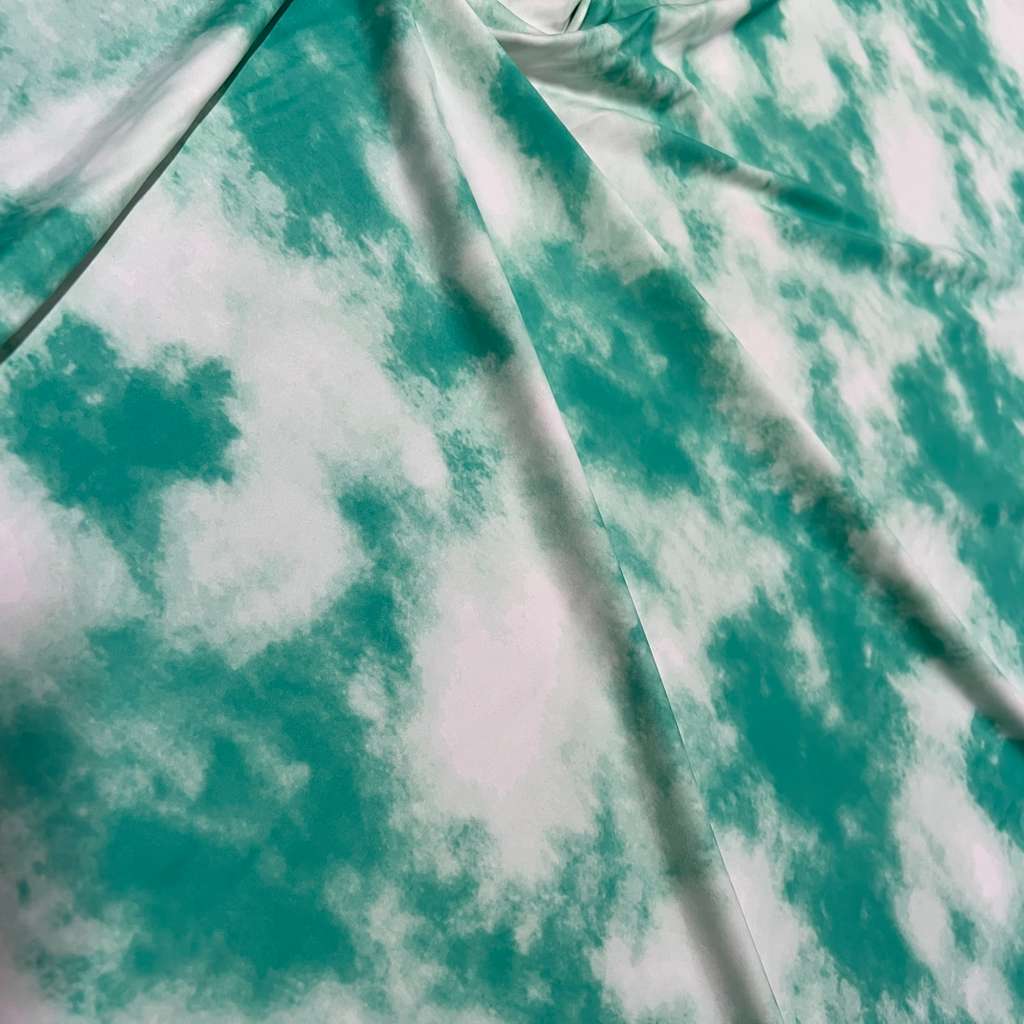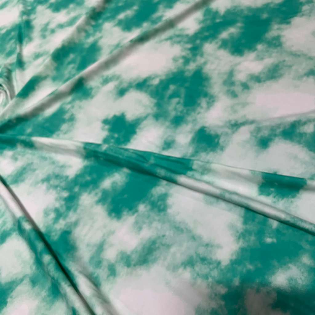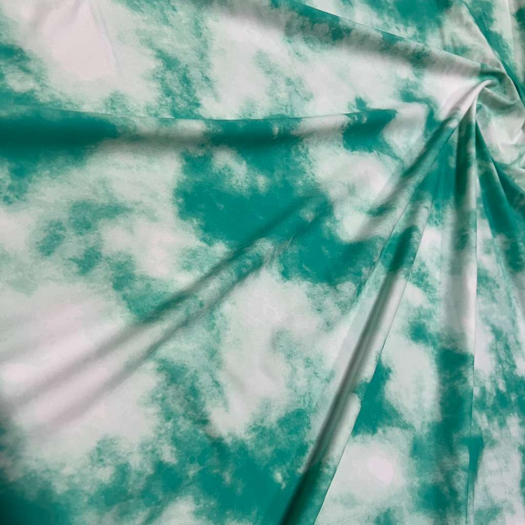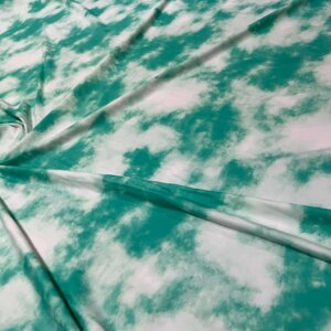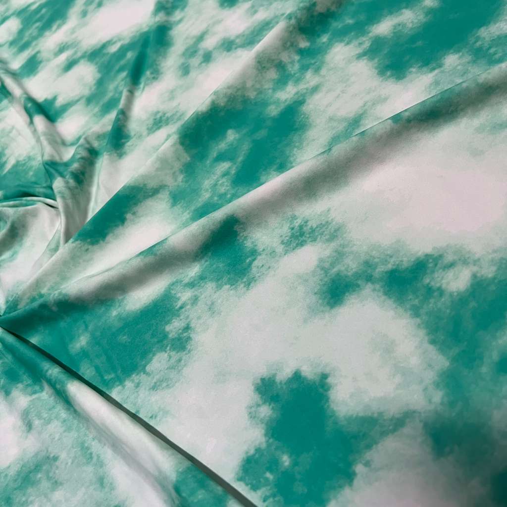 Abstract Clouds Tie Dye Green & White print Nylon Spandex Fabric 4 Way Stretch By Yard for swimwear dancewear gymwear sportwear (159-3)(20)