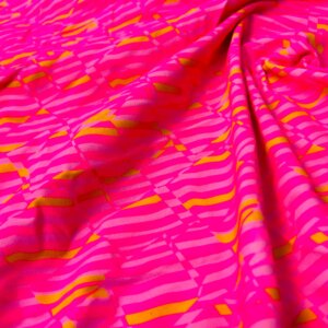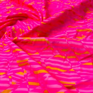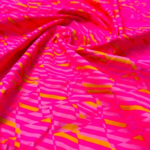 Abstract Hot Pink and Orange Print Nylon Lycra Spandex Fabric 4 Way Stretch By Yard for swimwear dancewear gymwear sportwear dress (279-1)