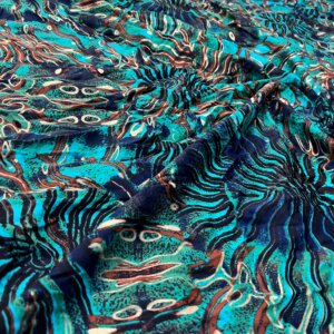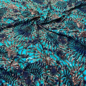 40″ by 32″ Long / Abstract Maritime Blue Print Nylon Spandex Fabric 4 Way Stretch By Yard for swimwear dancewear gymwear sportwear (203-5)