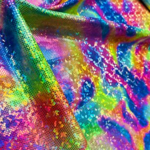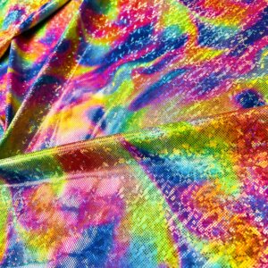 Spandex Fabric Abstract Multicolor Metallic Print Nylon Lycra 4 Way Stretch By Yard for swimwear dancewear gymwear sportwear