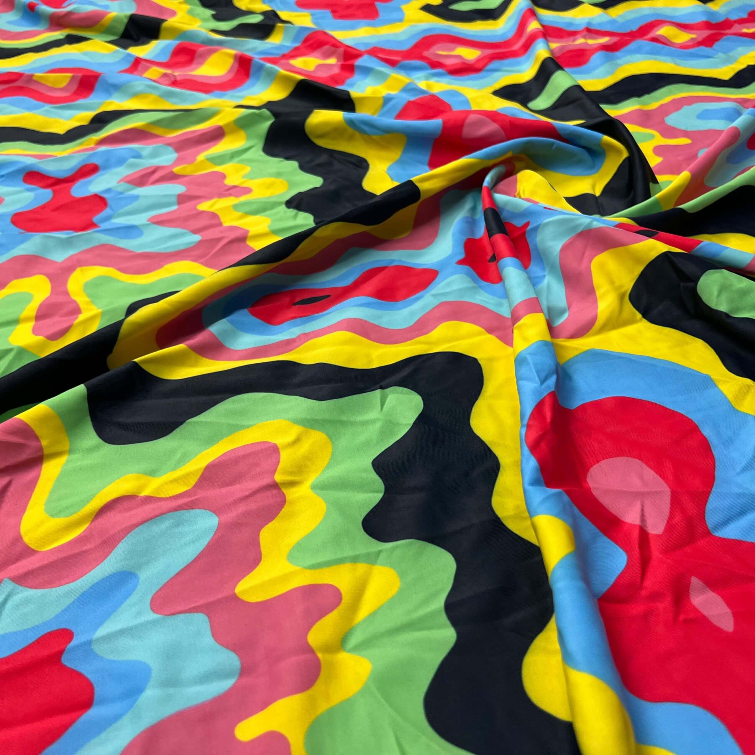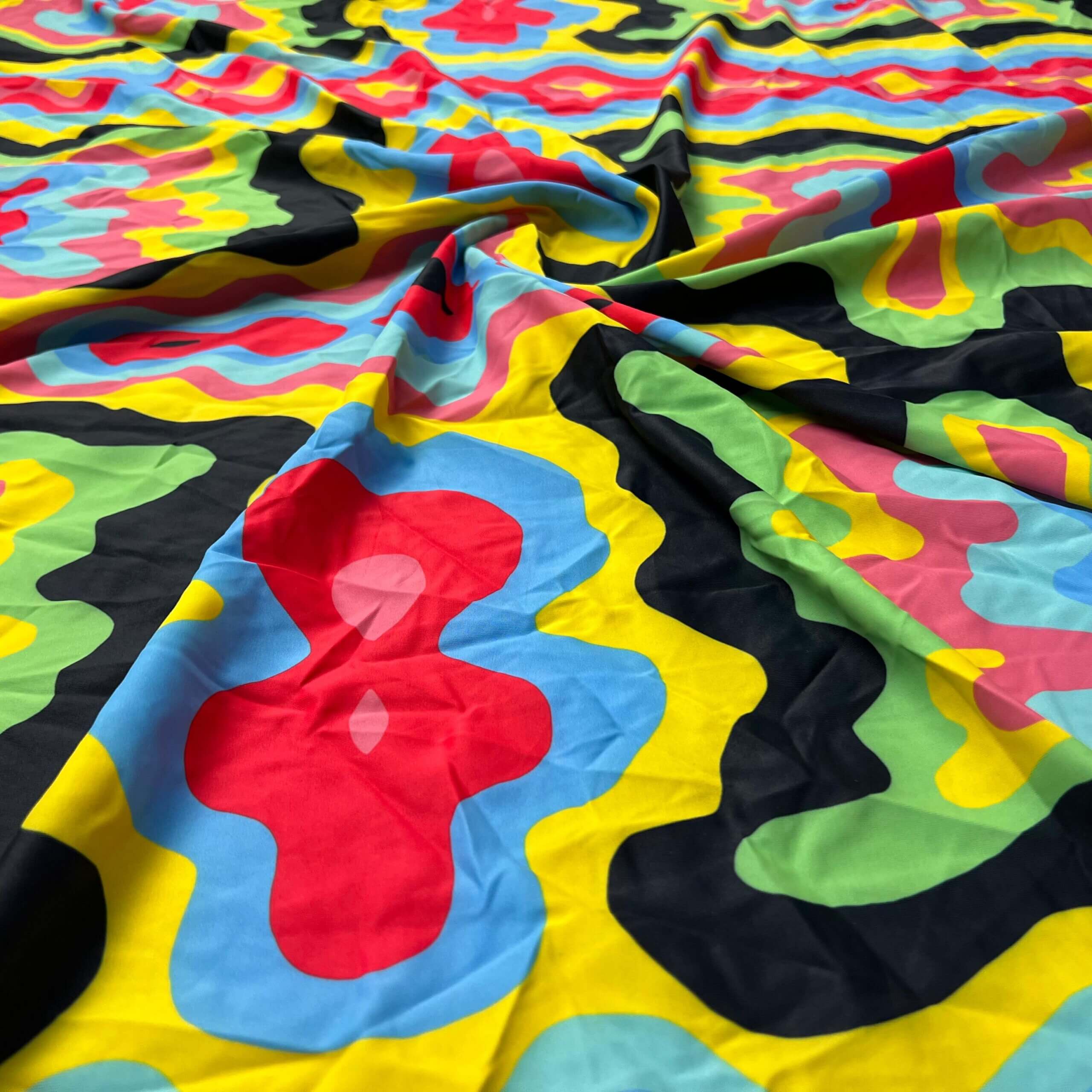 Abstract Multicolor Print Nylon Lycra Spandex Fabric 4 Way Stretch By Yard for swimwear dancewear gymwear sportwear dress (203-1)