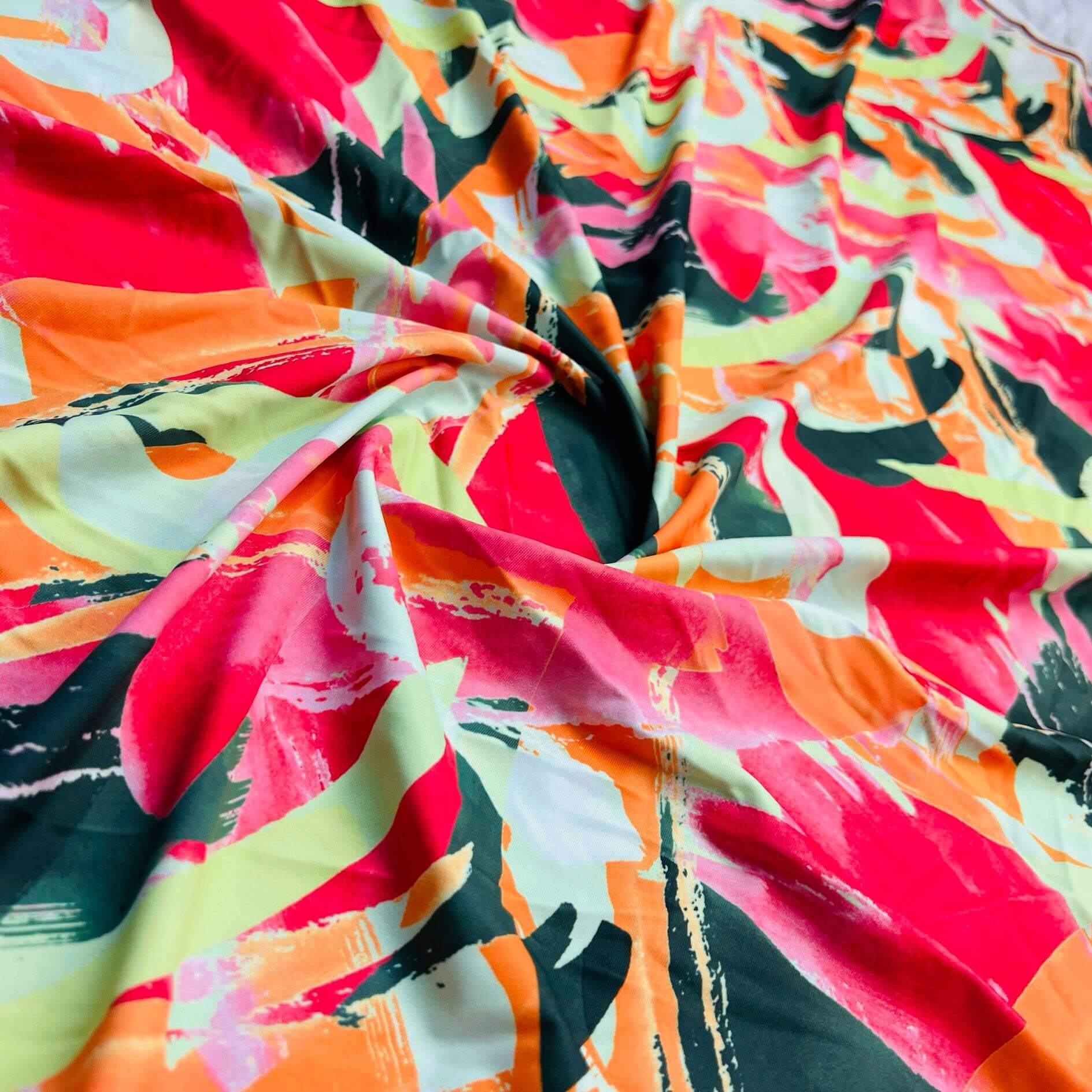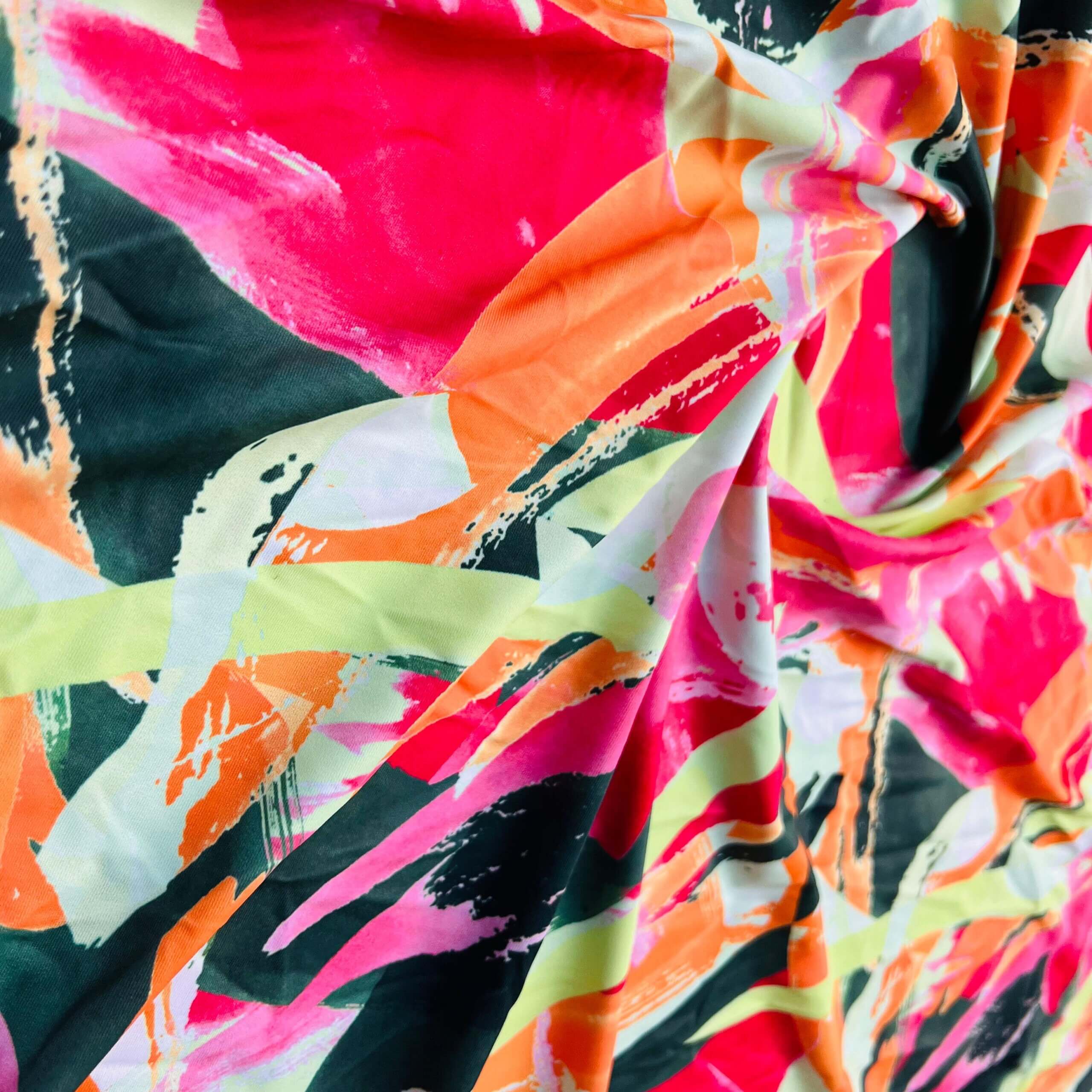 Abstract Multicolor White background Print Nylon Lycra Spandex Fabric 4 Way Stretch By Yard for swimwear dancewear gymwear sportwear dress (204-5)