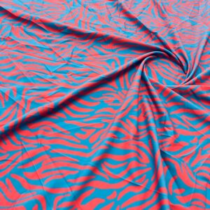 Abstract Neon Blue and Red Printed Nylon Spandex Fabric 4 Way Stretch By Yard for swimwear dancewear gymwear sportwear