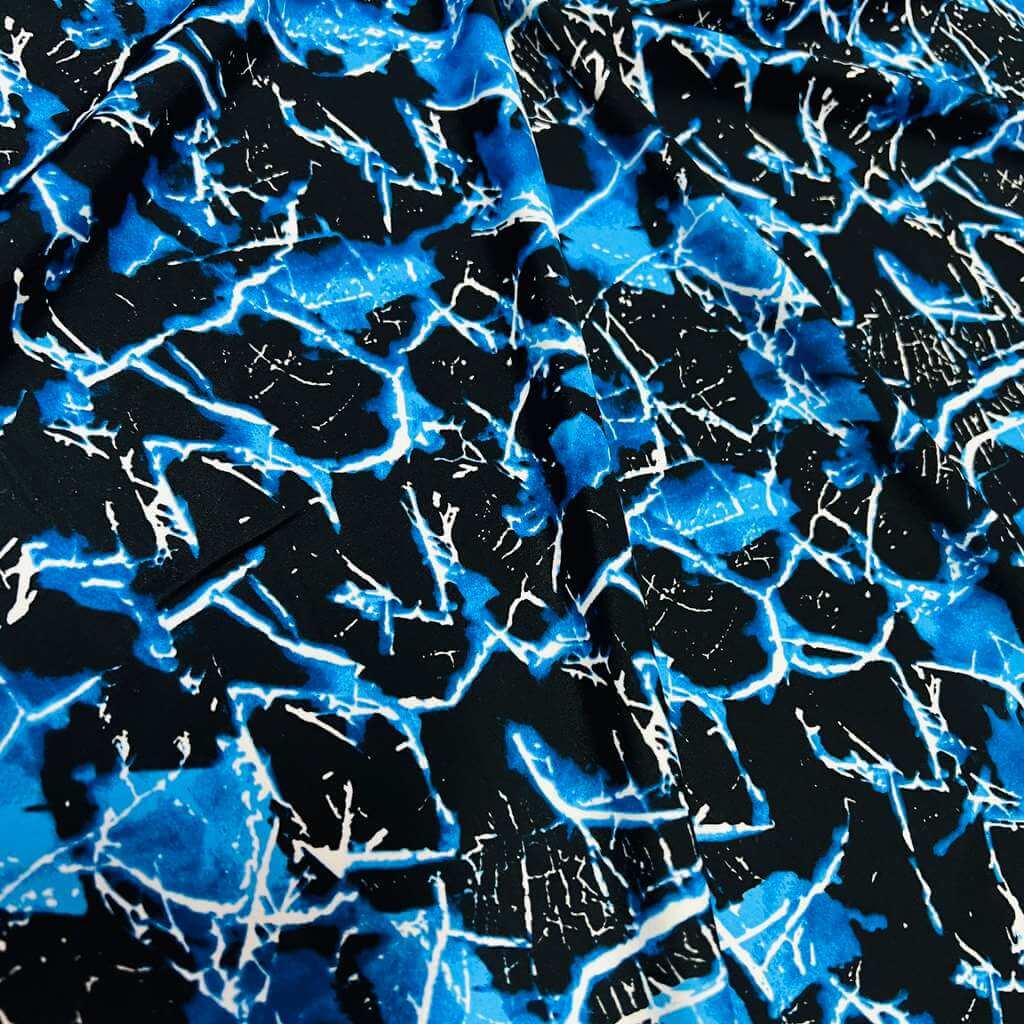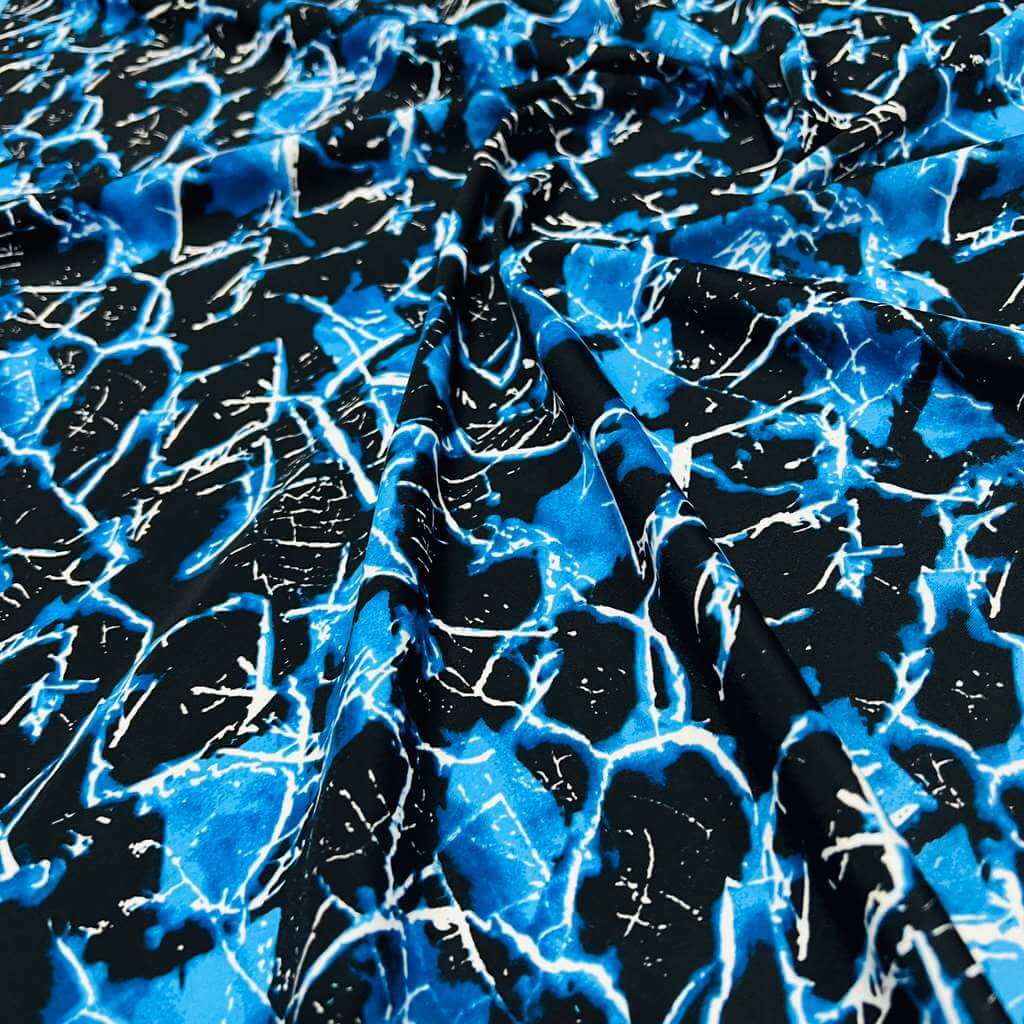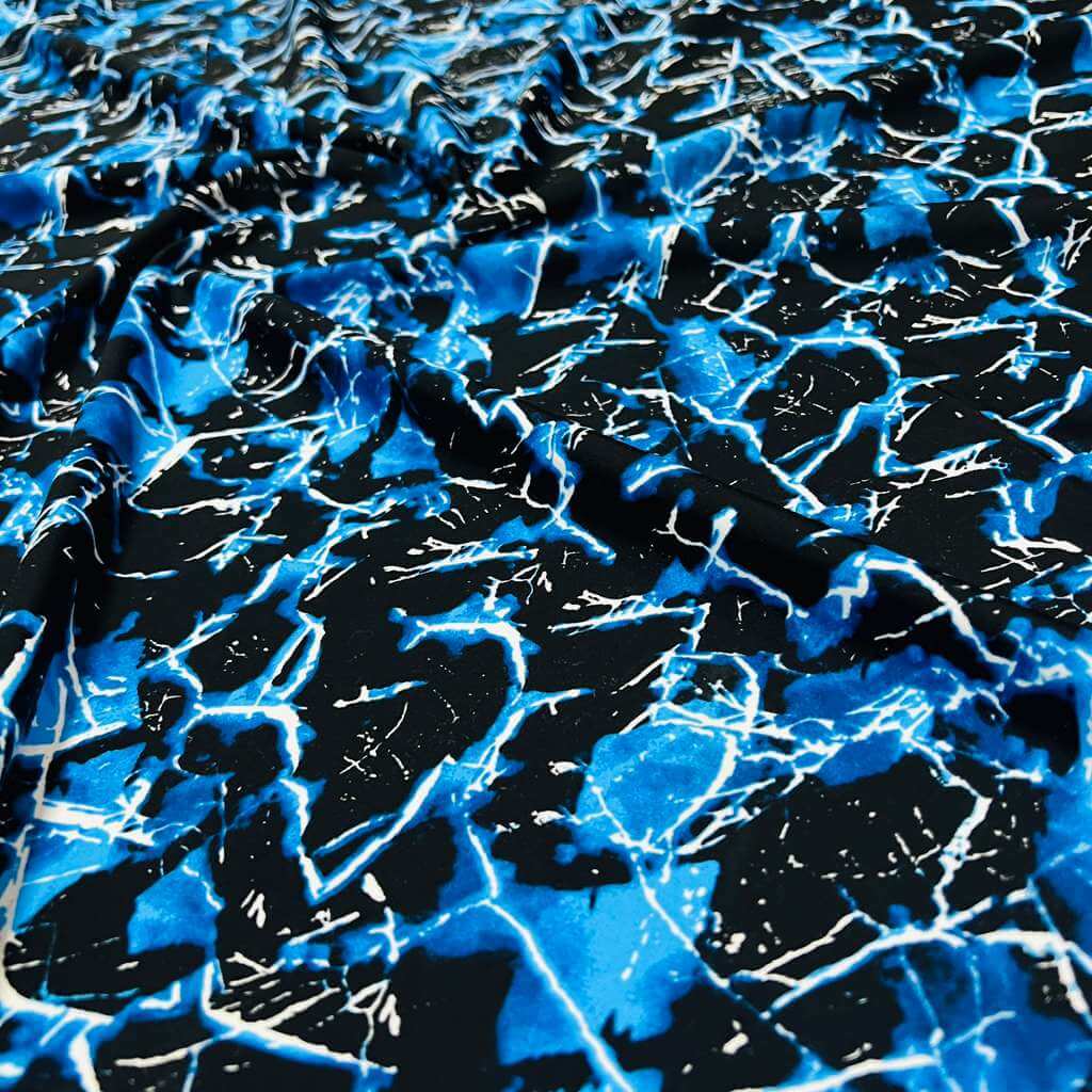 Abstract Neon Blue Thunders print Nylon Spandex Fabric 4 Way Stretch By Yard for swimwear dancewear gymwear sportwear (159)(38)