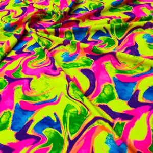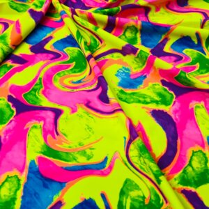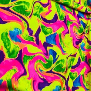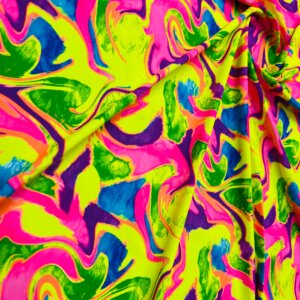 you are viewing Abstract Neon Psychedelic Print Nylon Lycra Spandex Fabric 4 Way Stretch By Yard for swimwear dancewear gymwear sportwear dress