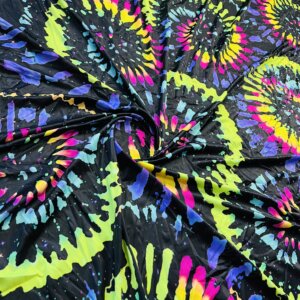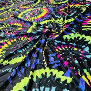 Abstract Neon Design black Background Print Nylon Lycra Spandex Fabric 4 Way Stretch By Yard