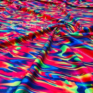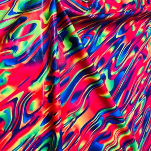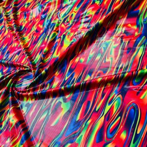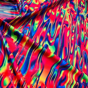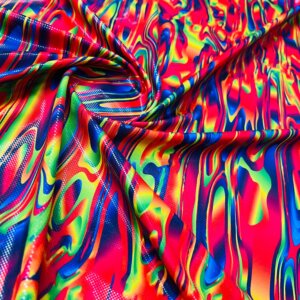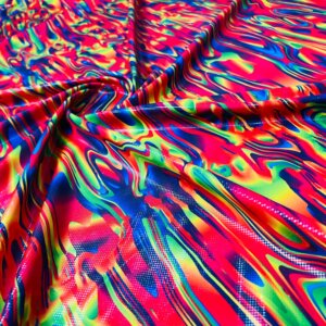 Abstract Psychedelic Neon Metallic Print Nylon Lycra Spandex Fabric 4 Way Stretch By Yard for swimwear dancewear gymwear sportwear dress (205-11)