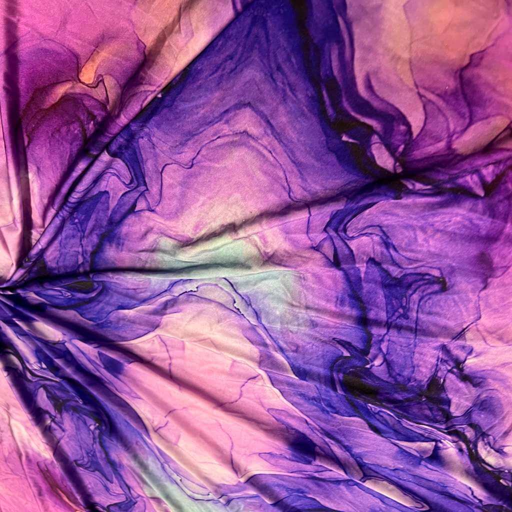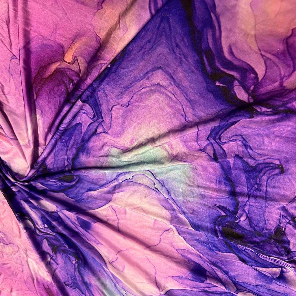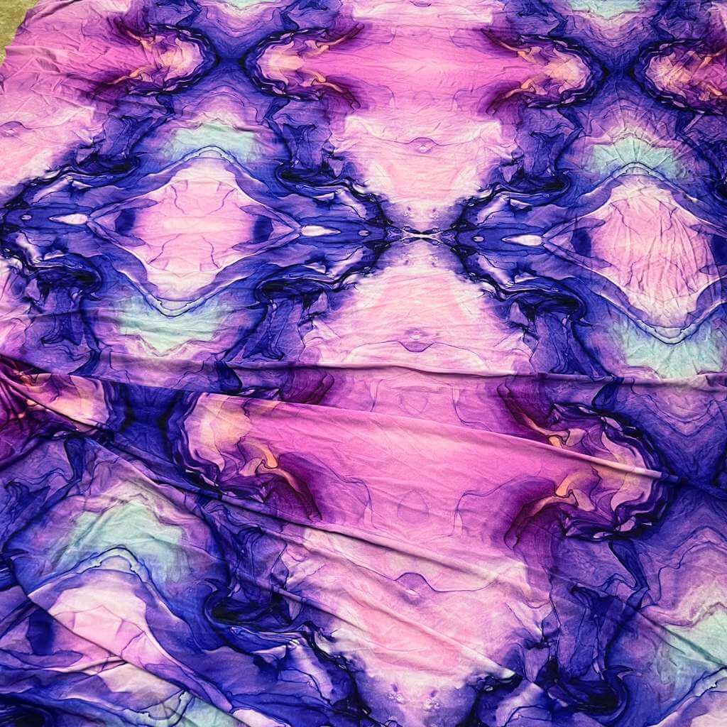 You are viewing Abstract Psychedelic Space Print Nylon Spandex Fabric 4 Way Stretch By Yard for swimwear dancewear gymwear sportwear. Extremely beautiful print weight 200 to 220 GSM 80% Nylon 20% Spandex.