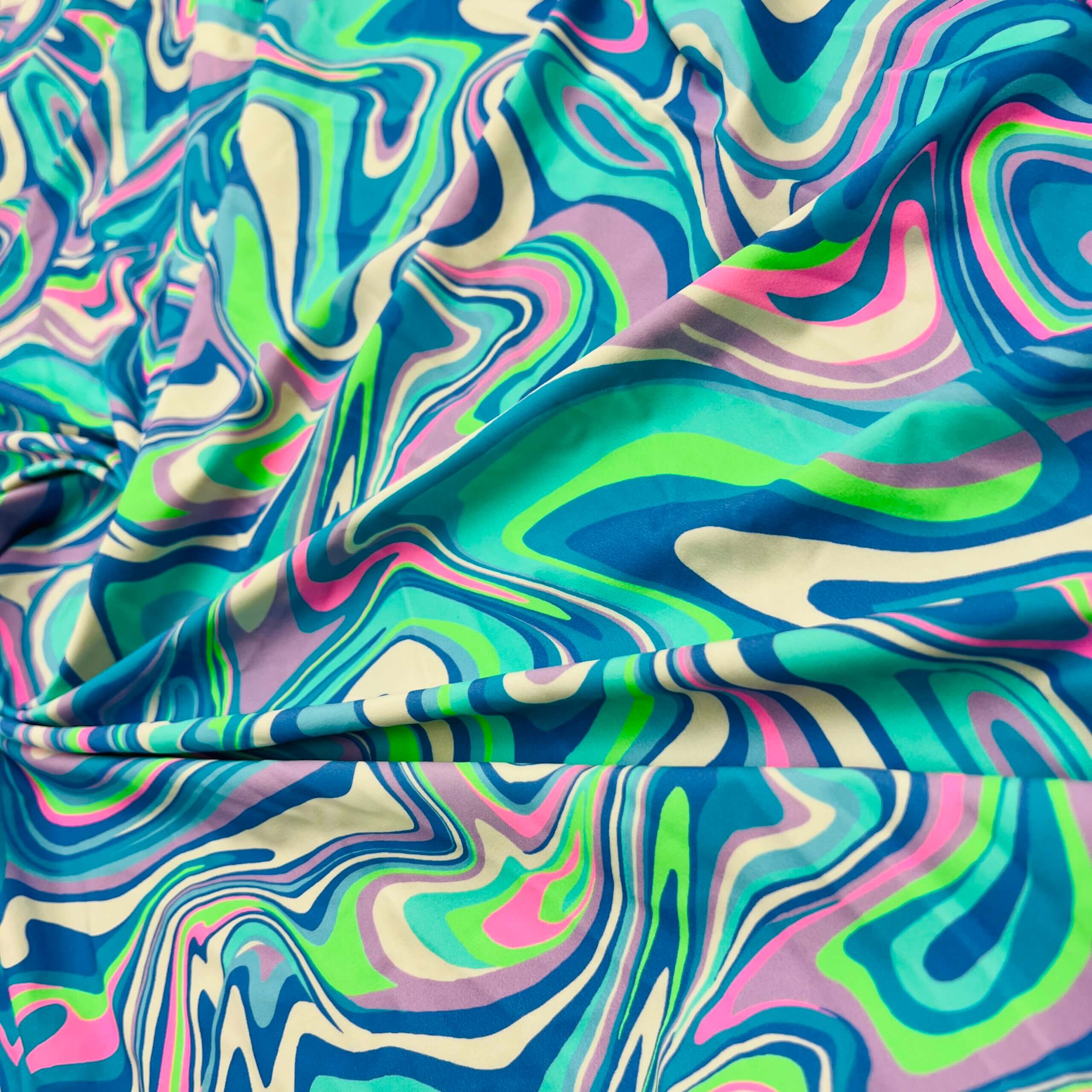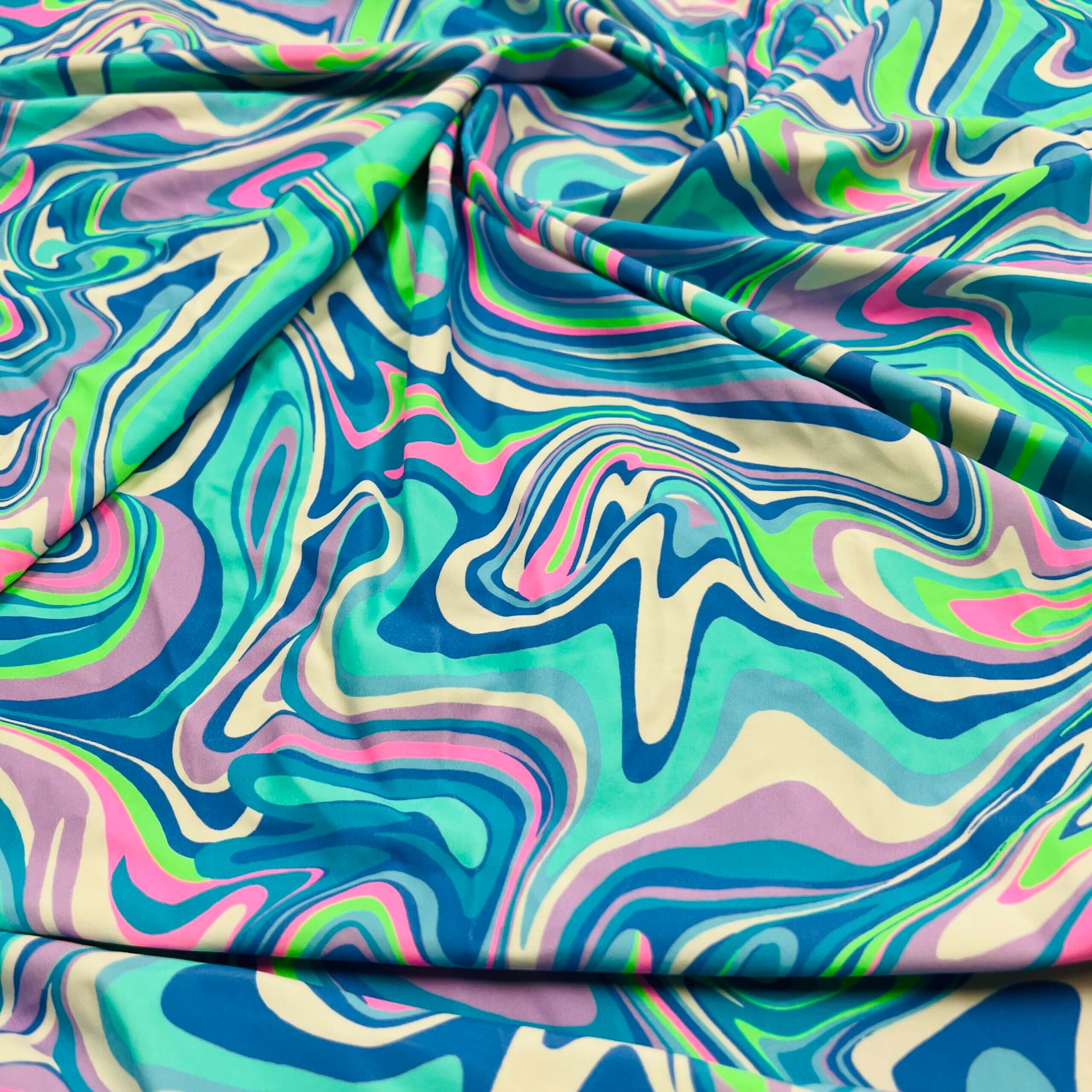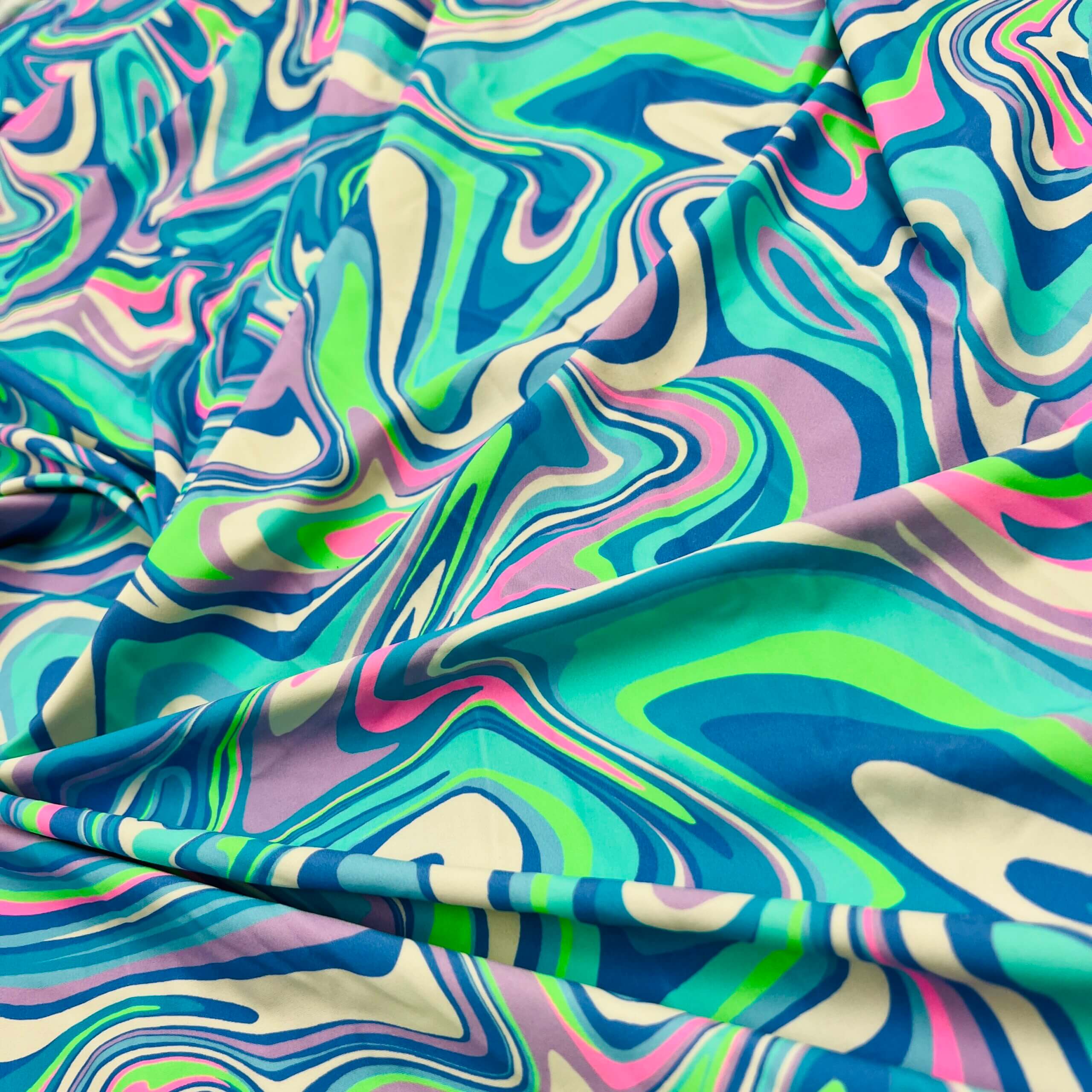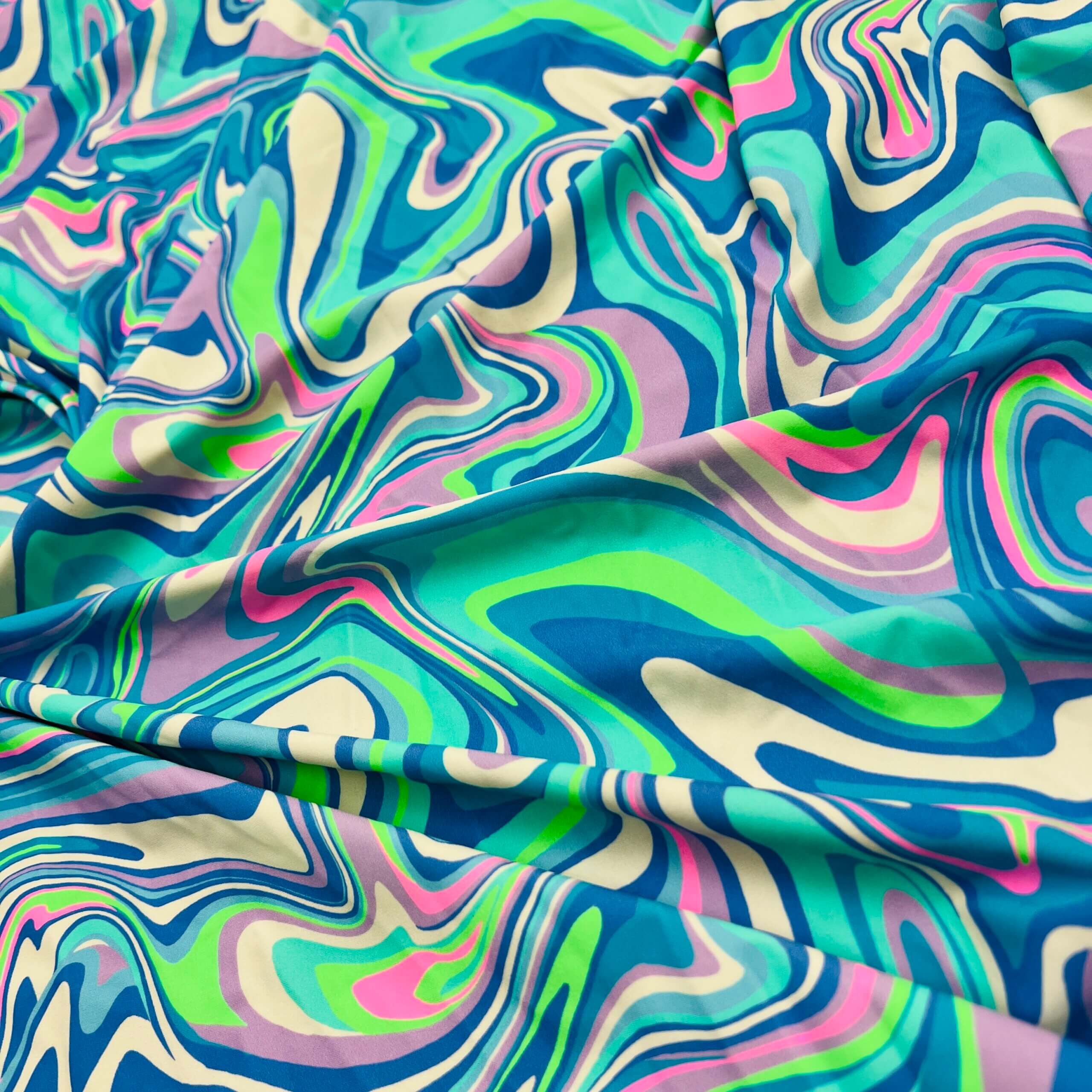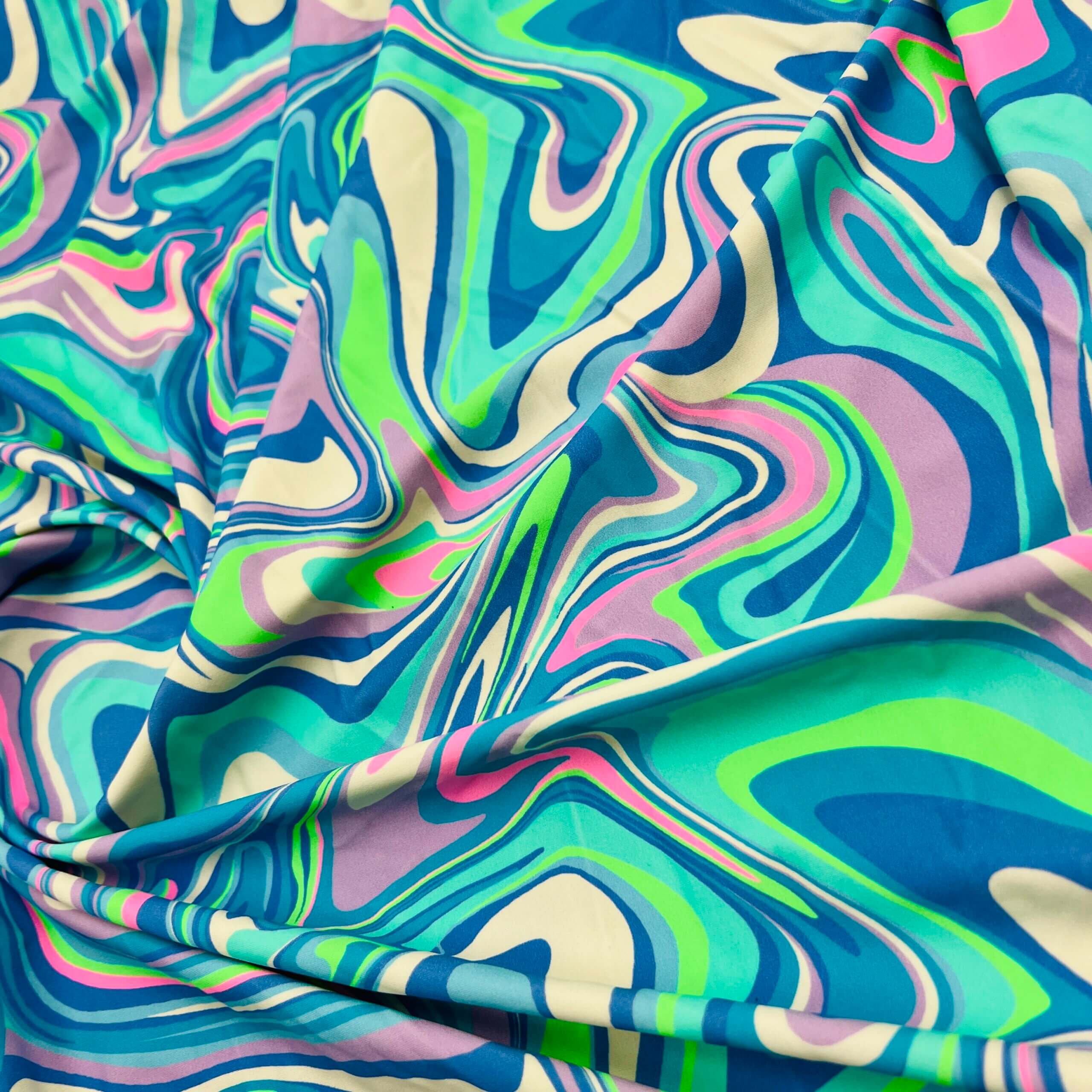 Abstract Psychedelic Wavy Print Nylon Lycra Spandex Fabric 4 Way Stretch By Yard for swimwear dancewear gymwear sportwear dress (157-1)
