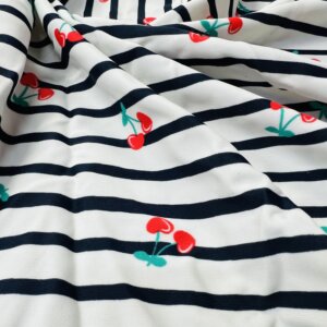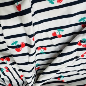 Abstract Stripes and Cherries Print Nylon Spandex Fabric 4 Way Stretch By Yard for swimwear dancewear gymwear sportw