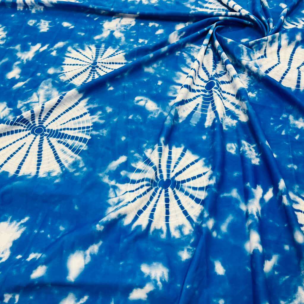 Abstract Tie dye Blue and white print Nylon Spandex Fabric 4 Way Stretch By Yard for swimwear dancewear gymwear sportwear