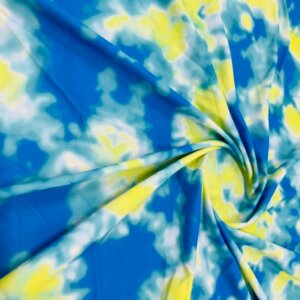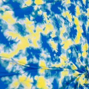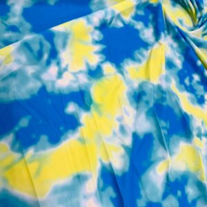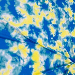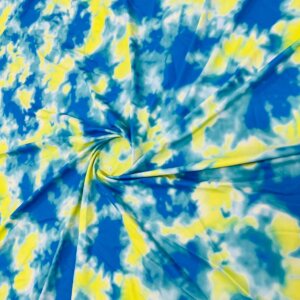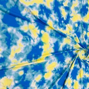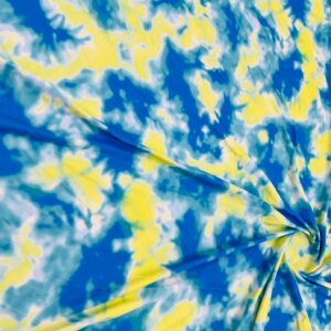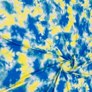 Abstract Tie dye Blue and Yellow Printed Nylon Spandex Fabric 4 Way Stretch By Yard for swimwear dancewear gymwear sportwear