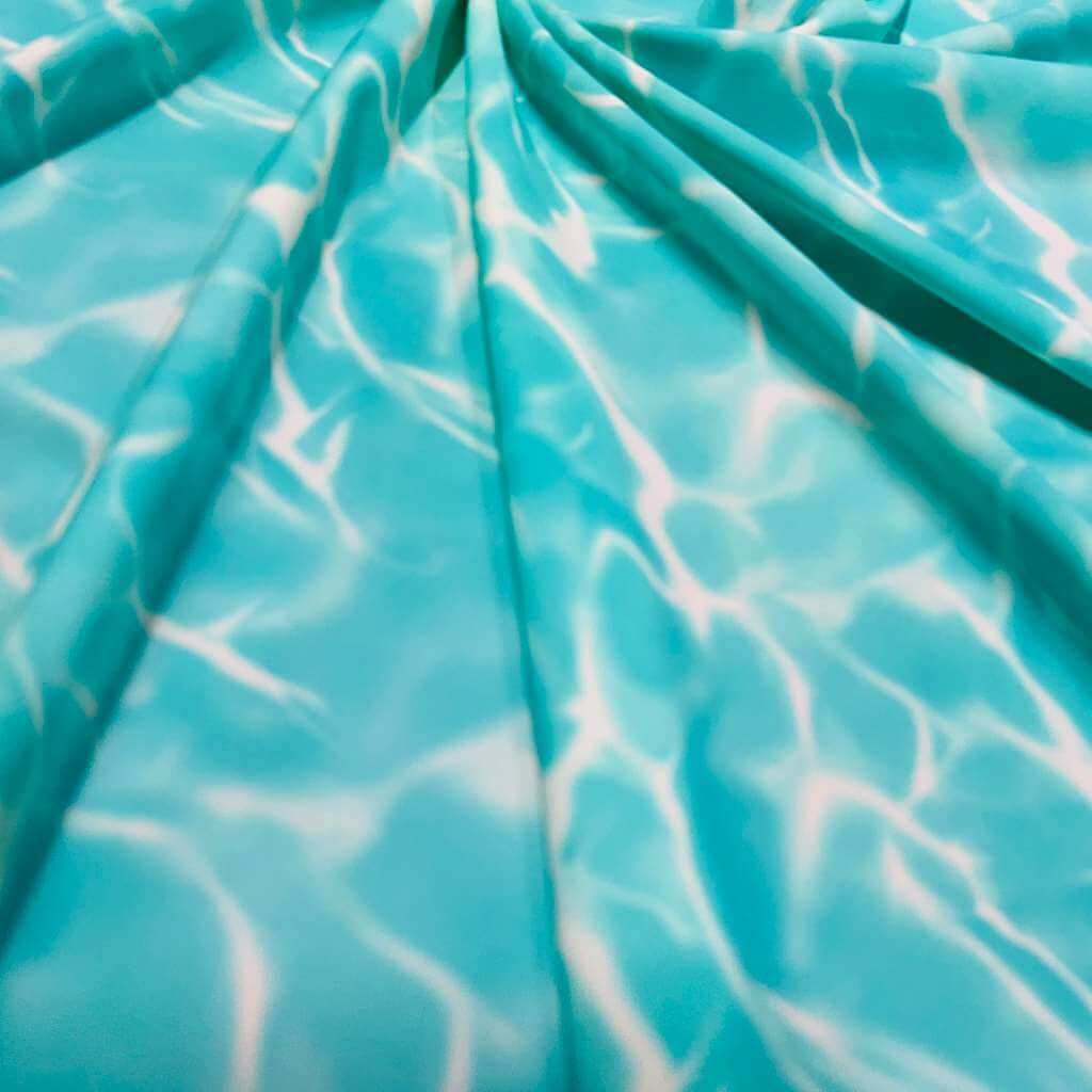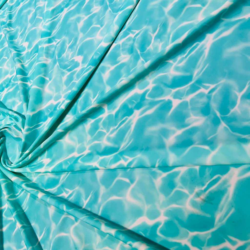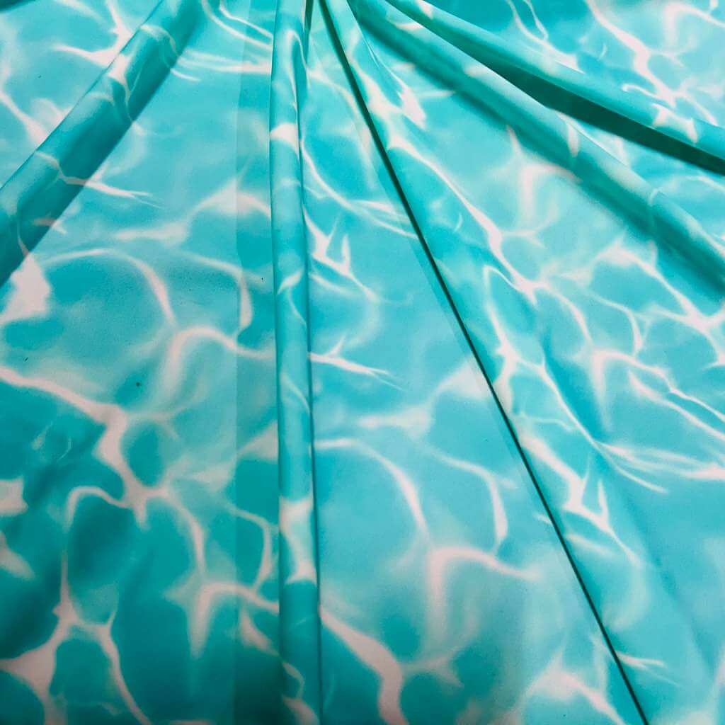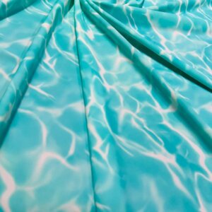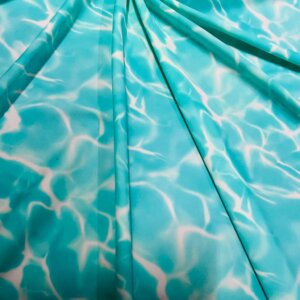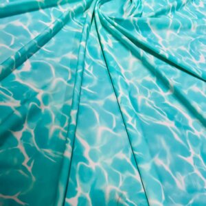 You are viewing Abstract Water Waves print Nylon Spandex Fabric 4 Way Stretch By Yard for swimwear dancewear gymwear sportwear. Extremely beautiful print weight 200 to 220 GSM 80% Nylon 20% Spandex.