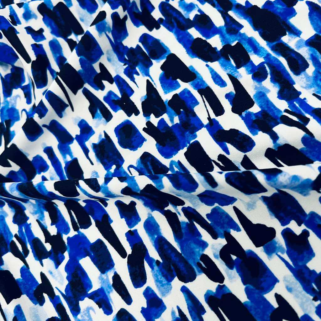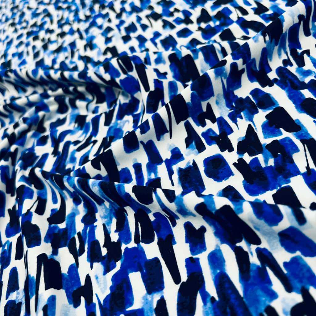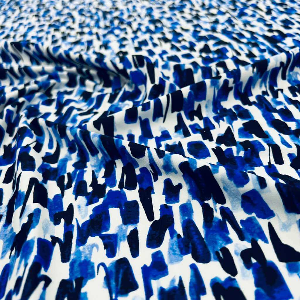 Abstract Watercolor Blue print Nylon Spandex Fabric 4 Way Stretch By Yard for swimwear dancewear gymwear sportwear (115-2)(30)