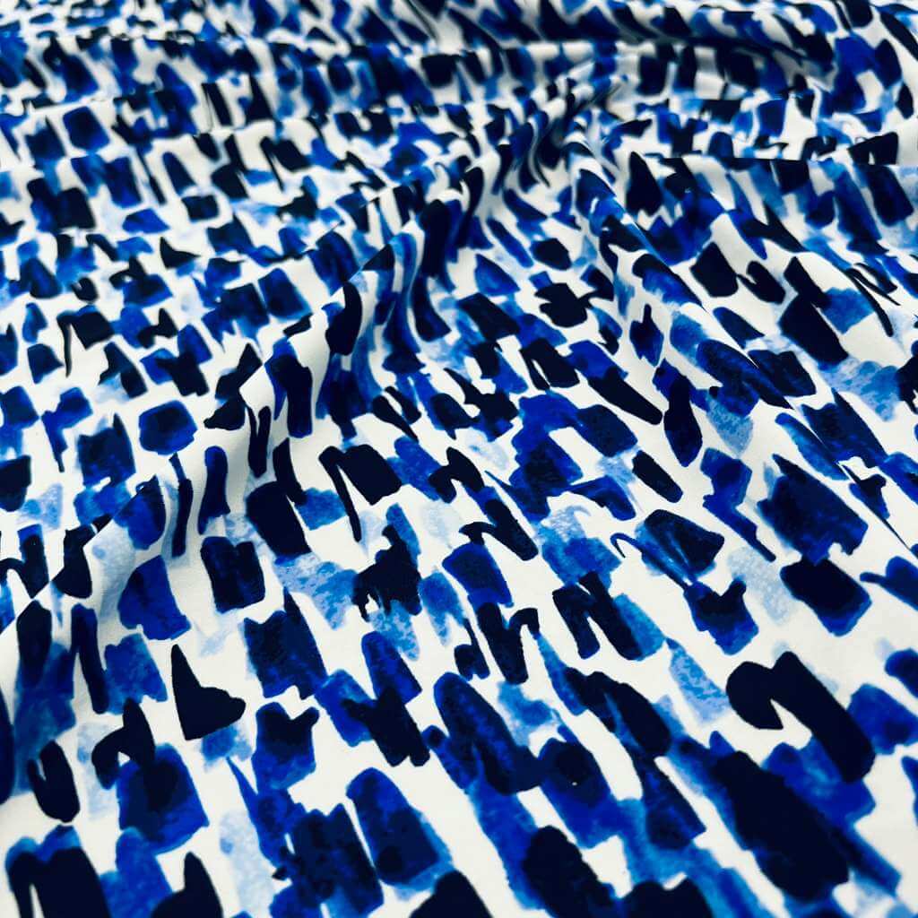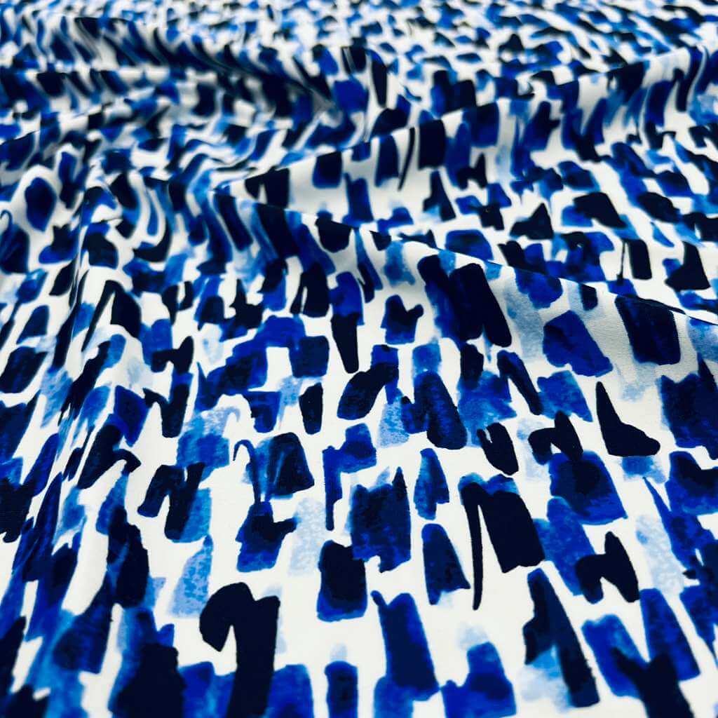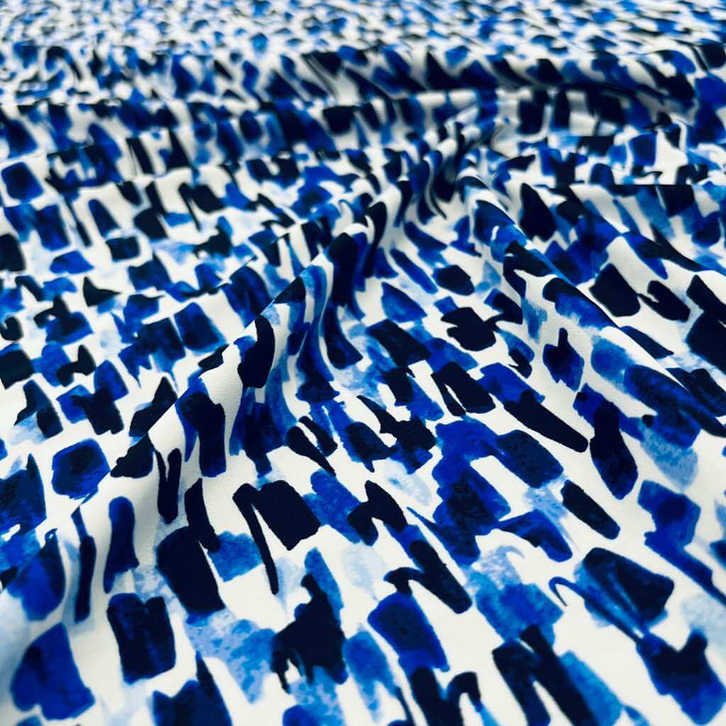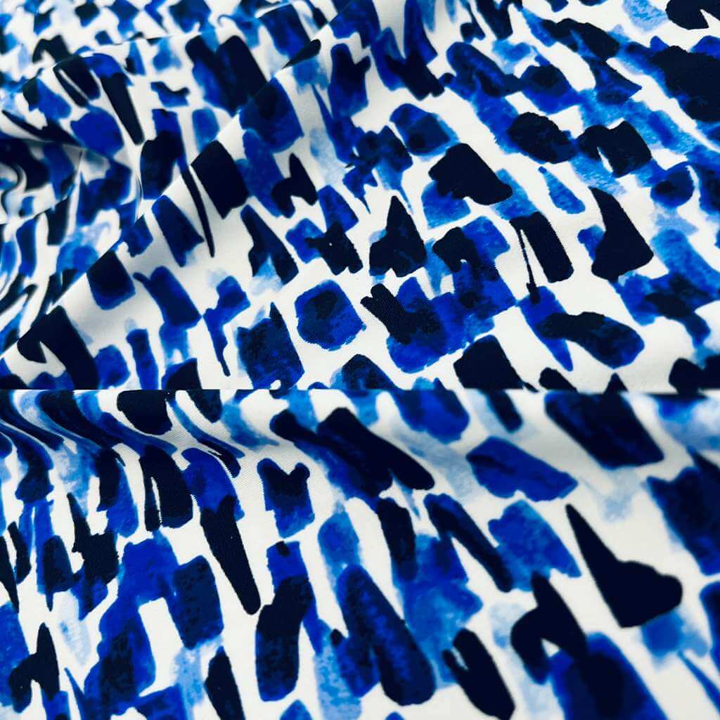 Abstract Watercolor Blue print Nylon Spandex Fabric 4 Way Stretch By Yard for swimwear dancewear gymwear sportwear (115-2)(30)