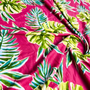 Green Leaves Pink Background Print Nylon Lycra Spandex Fabric 4 Way Stretch By Yard for swimwear dancewear gymwear sportwear dress (203-4)