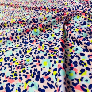 Animal Print Leopard Multicolor Pink background Nylon Lycra Spandex Fabric 4 Way Stretch By Yard for swimwear dancewear gymwear sportwear dress (239-5)