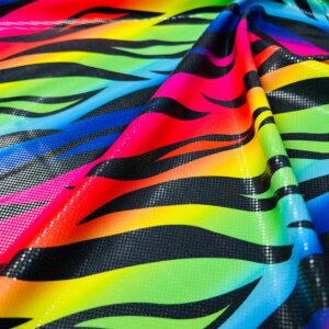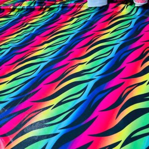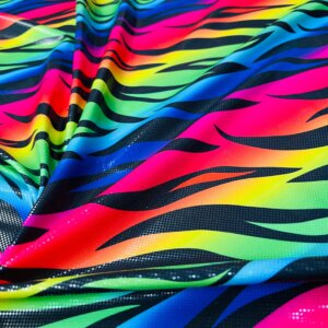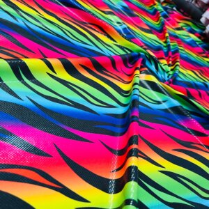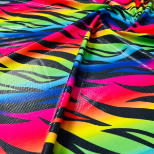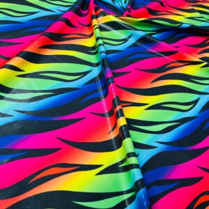 30″ Long / Animal Print Tiger Metallic Rainbow Background Nylon Lycra Spandex Fabric 4 Way Stretch By Yard for swimwear dancewear gymwear sportwear dress (158-1)