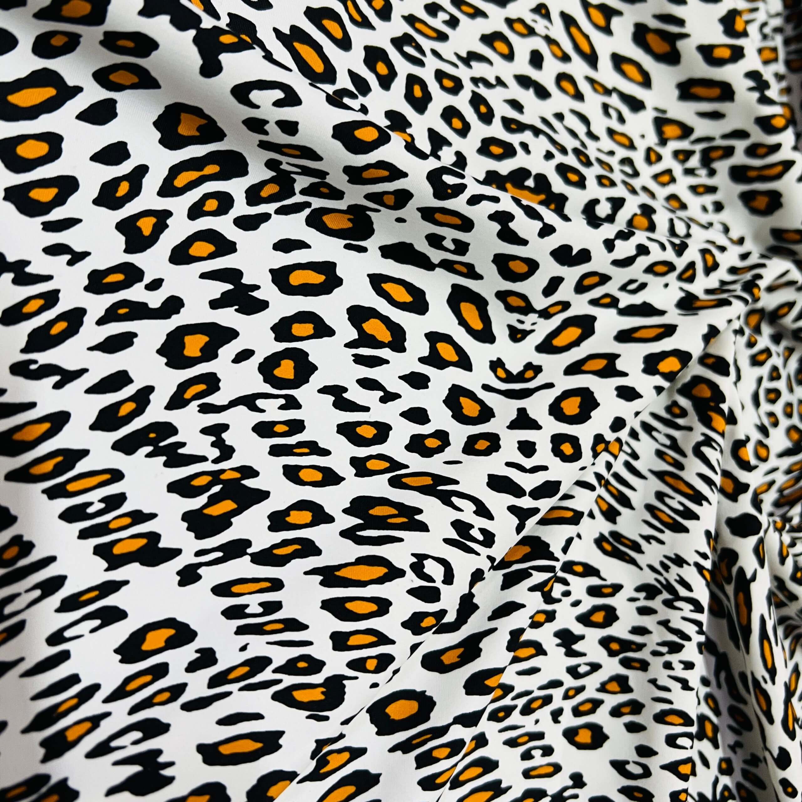 Animal Print White and Yellow Nylon Lycra Spandex Fabric 4 Way Stretch By Yard for swimwear dancewear sportwear dress
