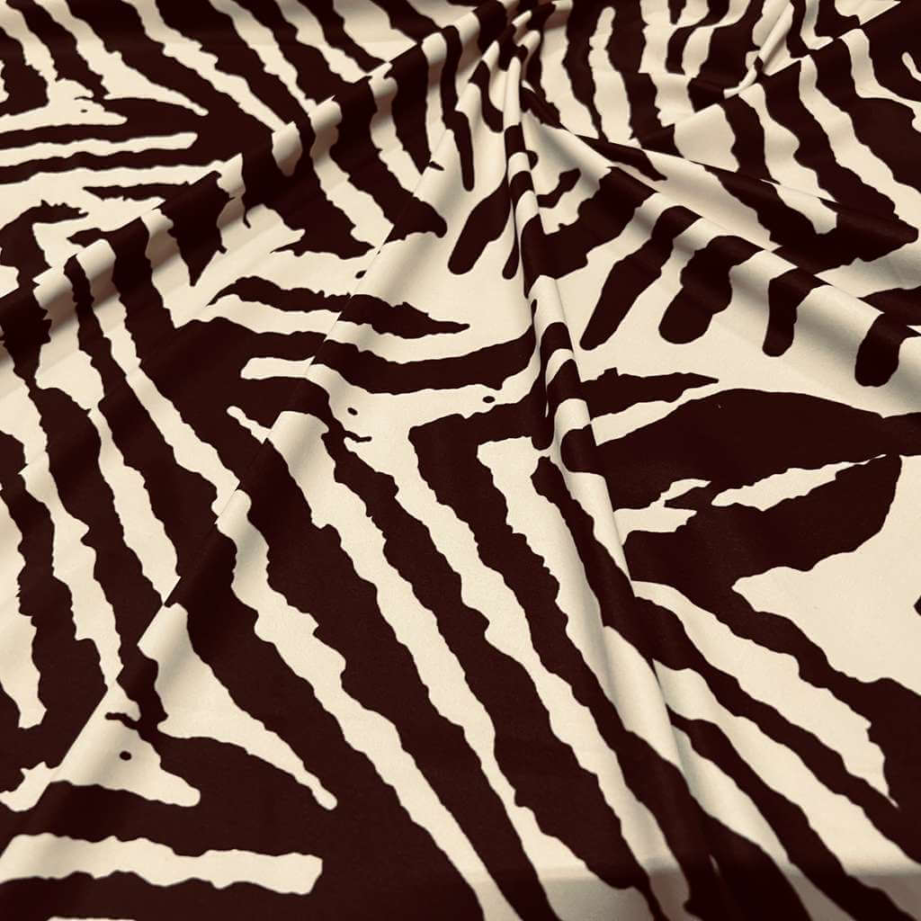 Animal Print Zebra Beige and Brown Nylon Spandex Fabric 4 Way Stretch By Yard for swimwear dancewear gymwear sportwear dress skirt (159-3)(28)