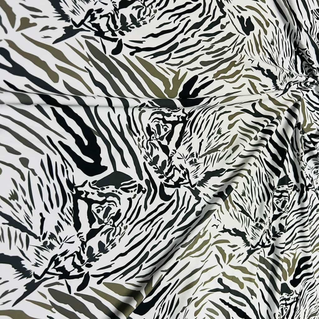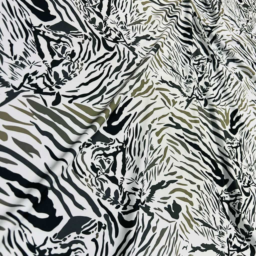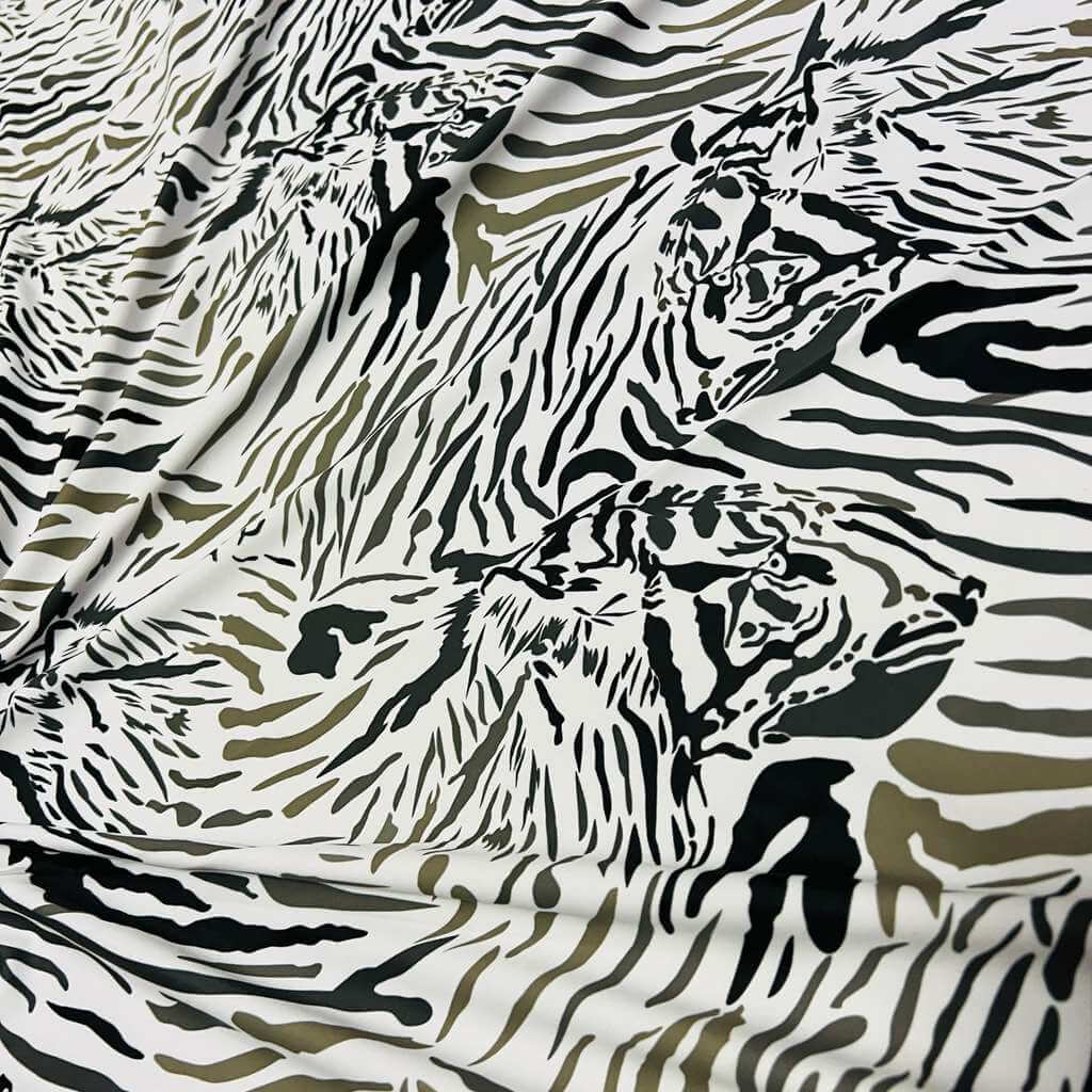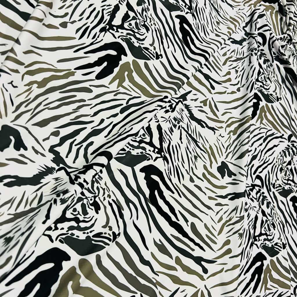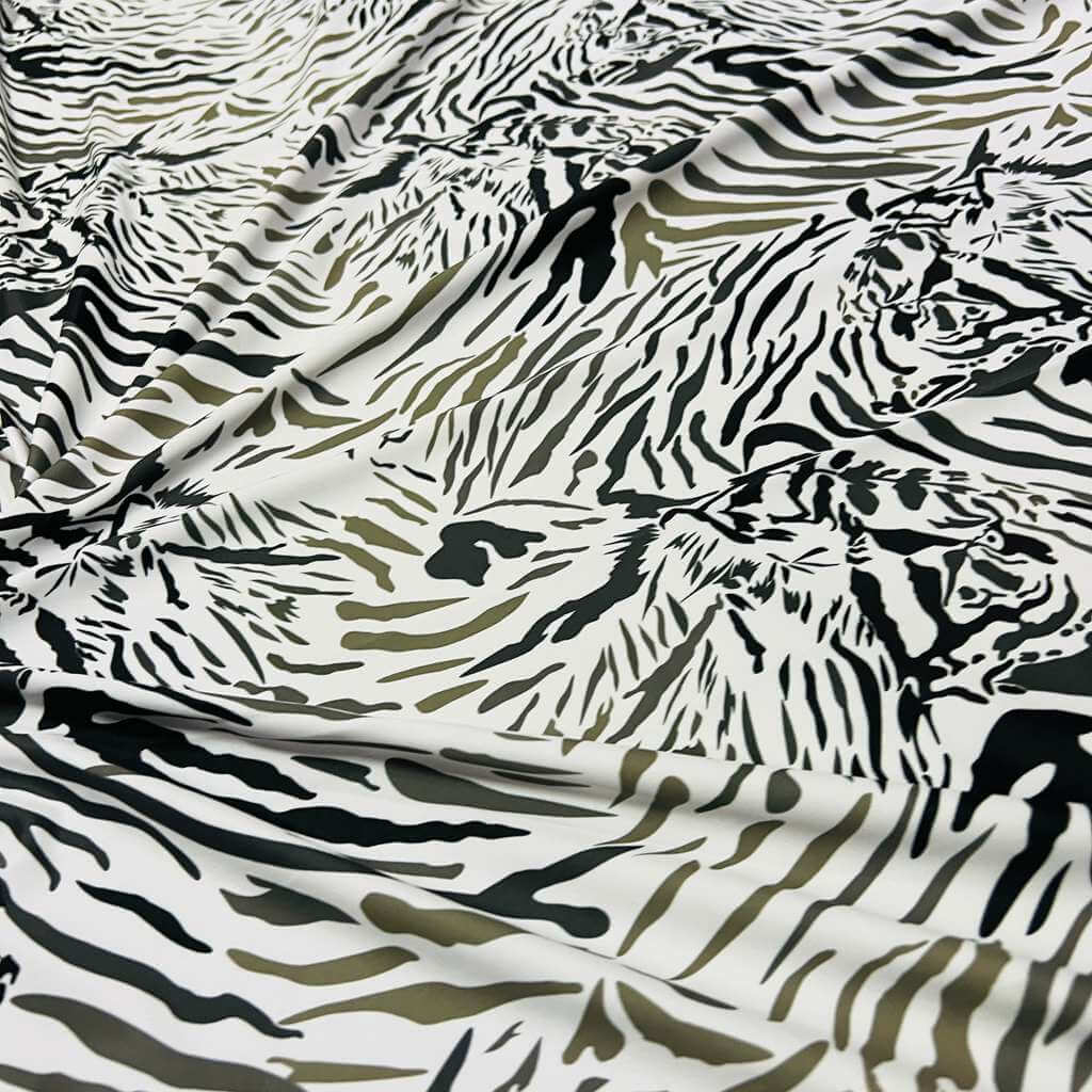 Animal Print Zebra with Gray Nylon Spandex Fabric 4 Way Stretch By Yard for swimwear dancewear gymwear sportwear dress skirt (159-4)(30)