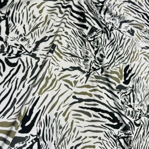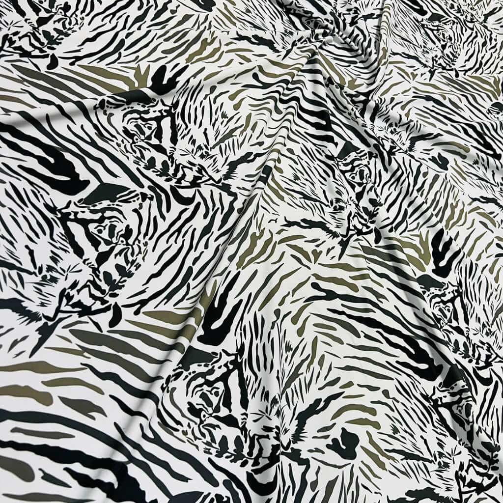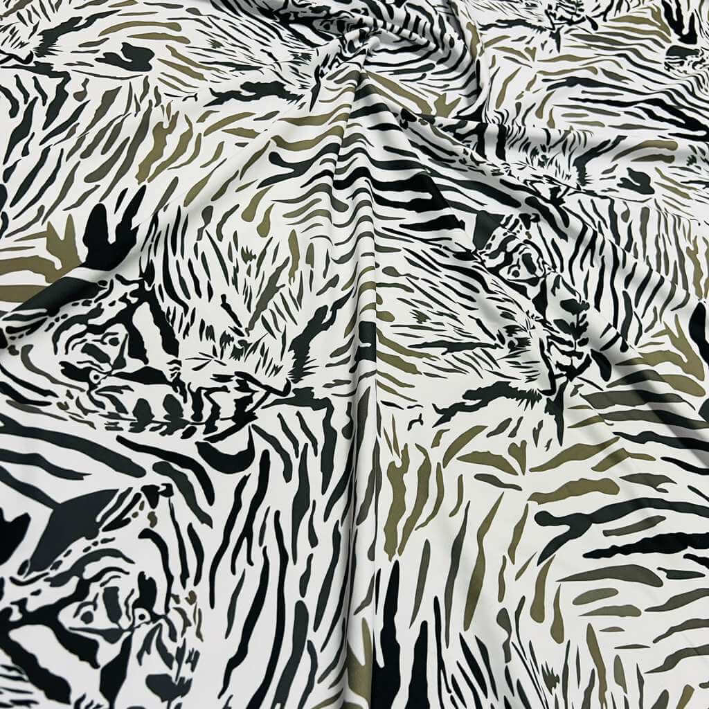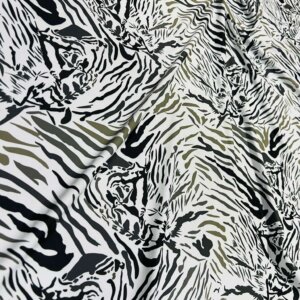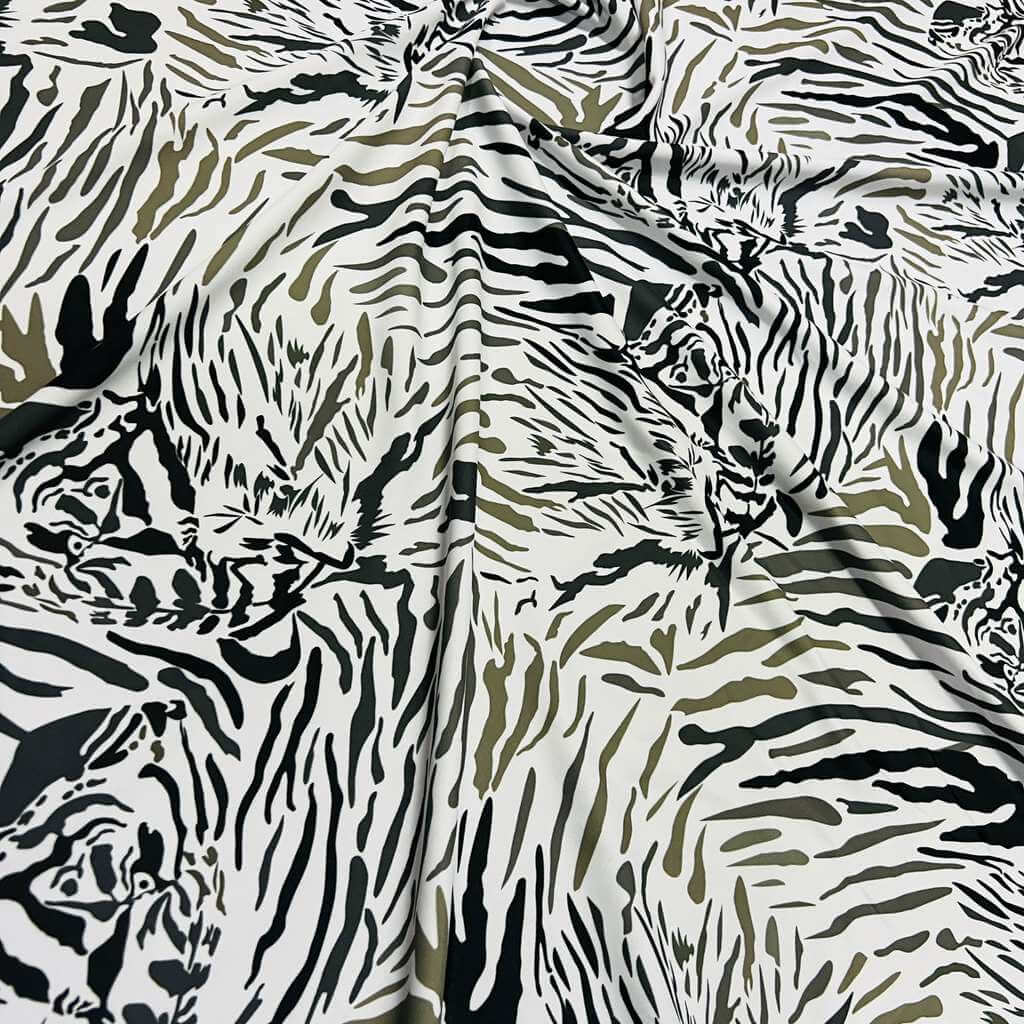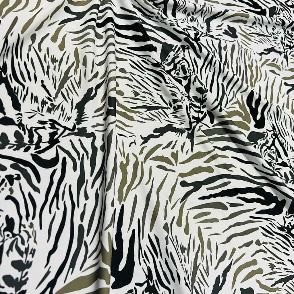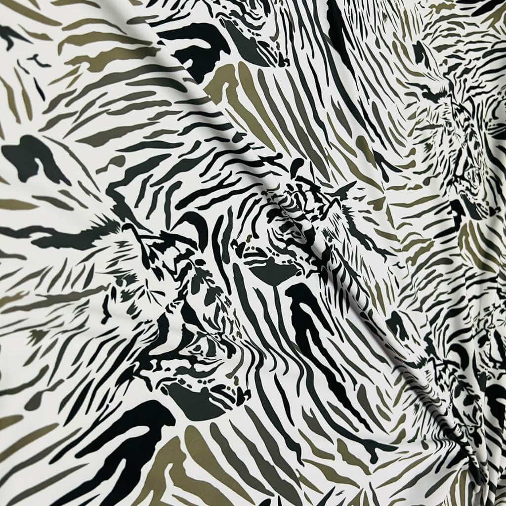 Animal Print Zebra with Gray Nylon Spandex Fabric 4 Way Stretch By Yard for swimwear dancewear gymwear sportwear dress skirt (159-4)(30)