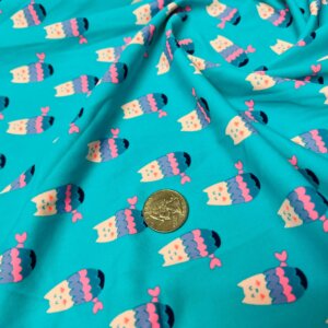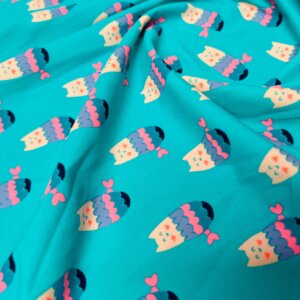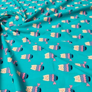Animated Owls Blue Background Print Nylon Lycra Spandex Fabric 4 Way Stretch By Yard for swimwear dancewear gymwear sportwear dress (157-7)