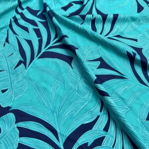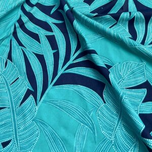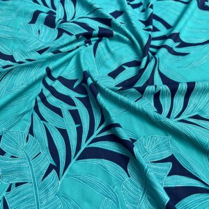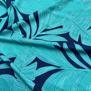 Aquamarine Leaves Navy Blue Background Print Nylon Lycra Spandex Fabric 4 Way Stretch By Yard for swimwear dancewear gymwear sportwear dress(158-1)