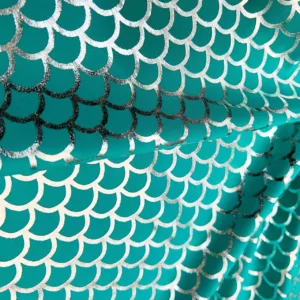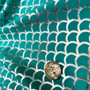 Aquamarine Scales Metallic Print Nylon Spandex Fabric 4 Way Stretch By Yard for swimwear dancewear gymwear sportwear (203-10)