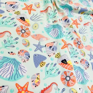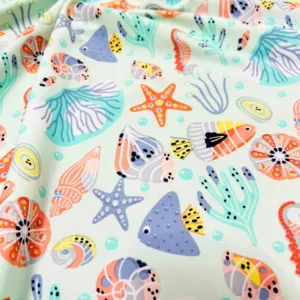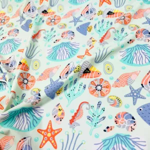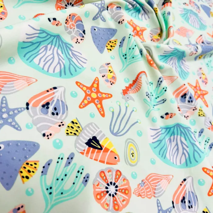 You are viewing Aquatic Animals Print Nylon Lycra Spandex fabric four way Stretch by Yard for swimwear dancewear dress gymwear