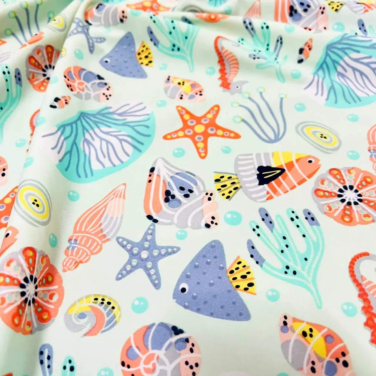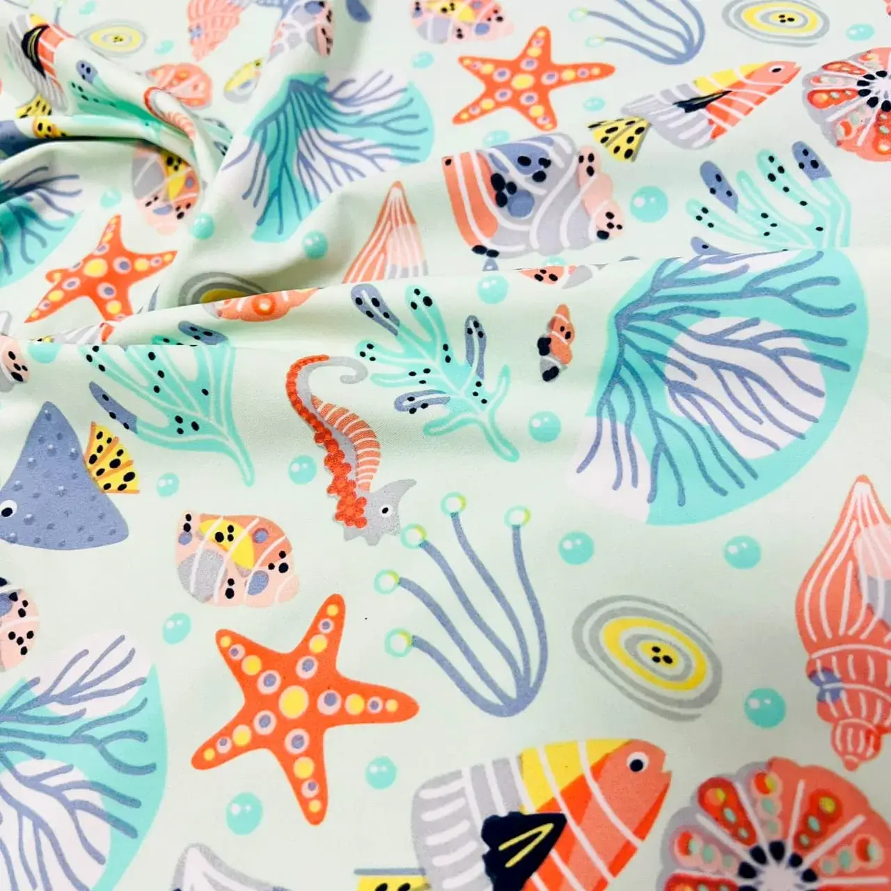 Aquatic Animals Print Nylon Lycra Spandex fabric four way Stretch by Yard for swimwear dancewear dress gymwear (158-4)