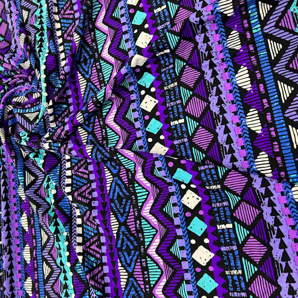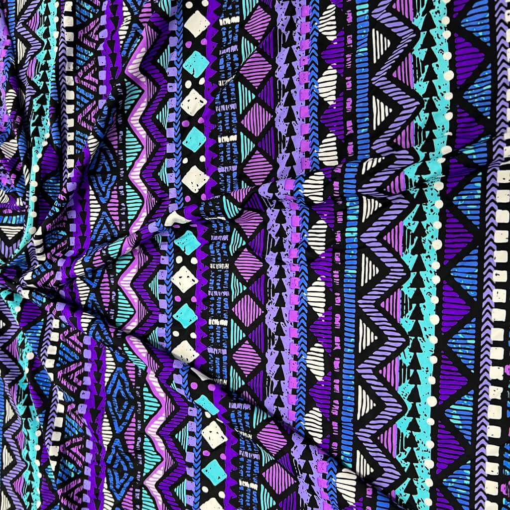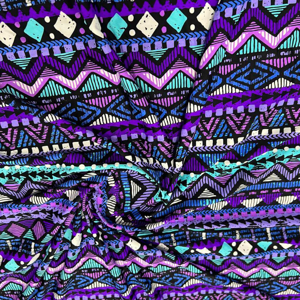 Aztec Ethnic Purple printed Nylon Lycra Spandex Fabric 4 Way Stretch By Yard for swimwear dancewear gymwear sportwear dress